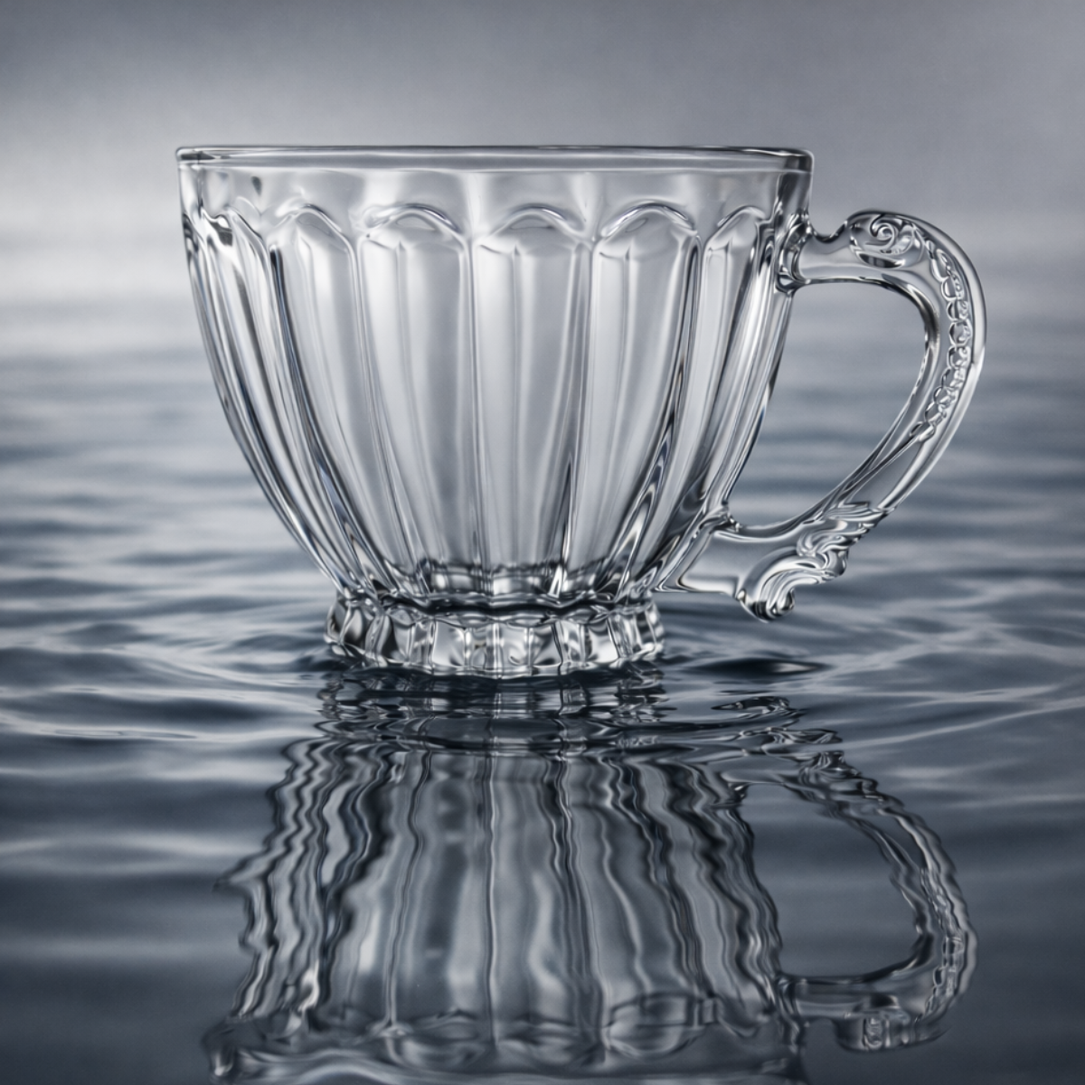 Design clássico: A Xícara de Vidro Lapidada Clássica possui acabamento sofisticado que valoriza qualquer mesa posta.