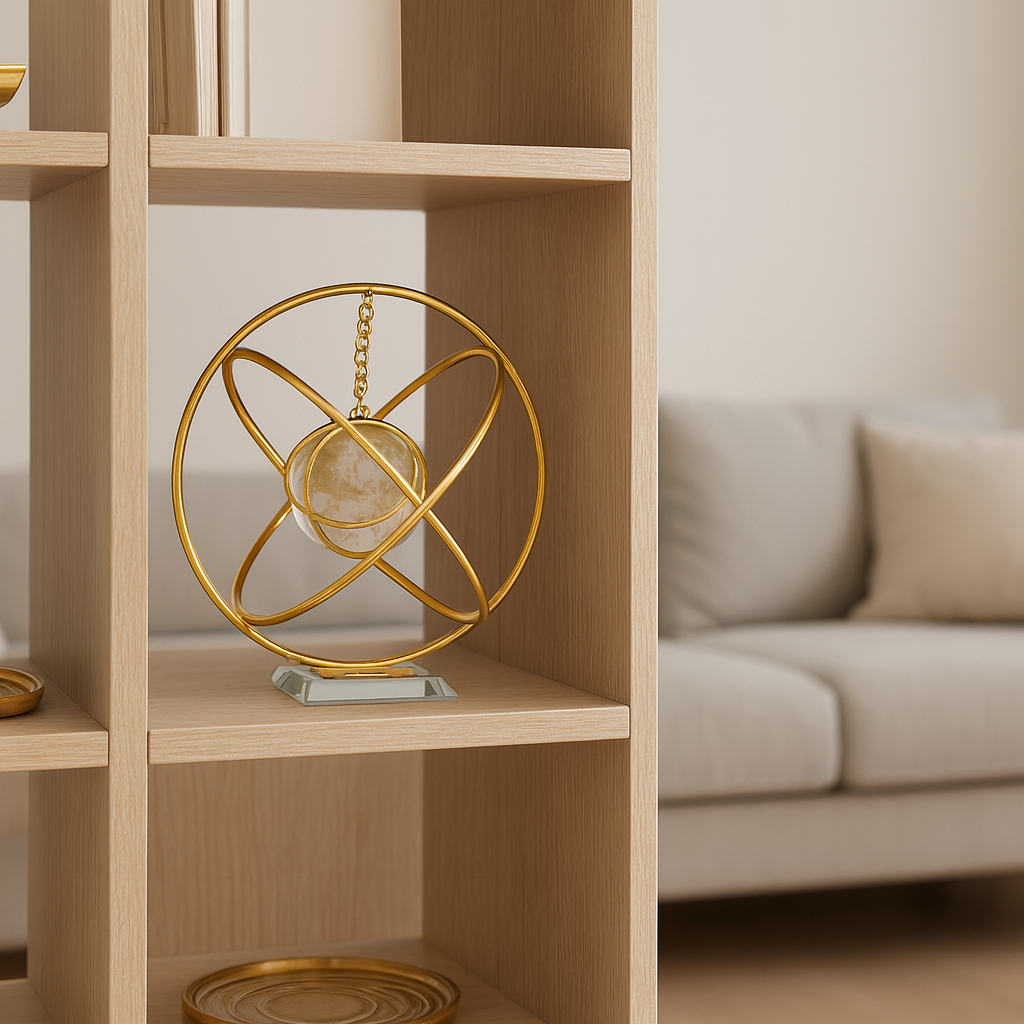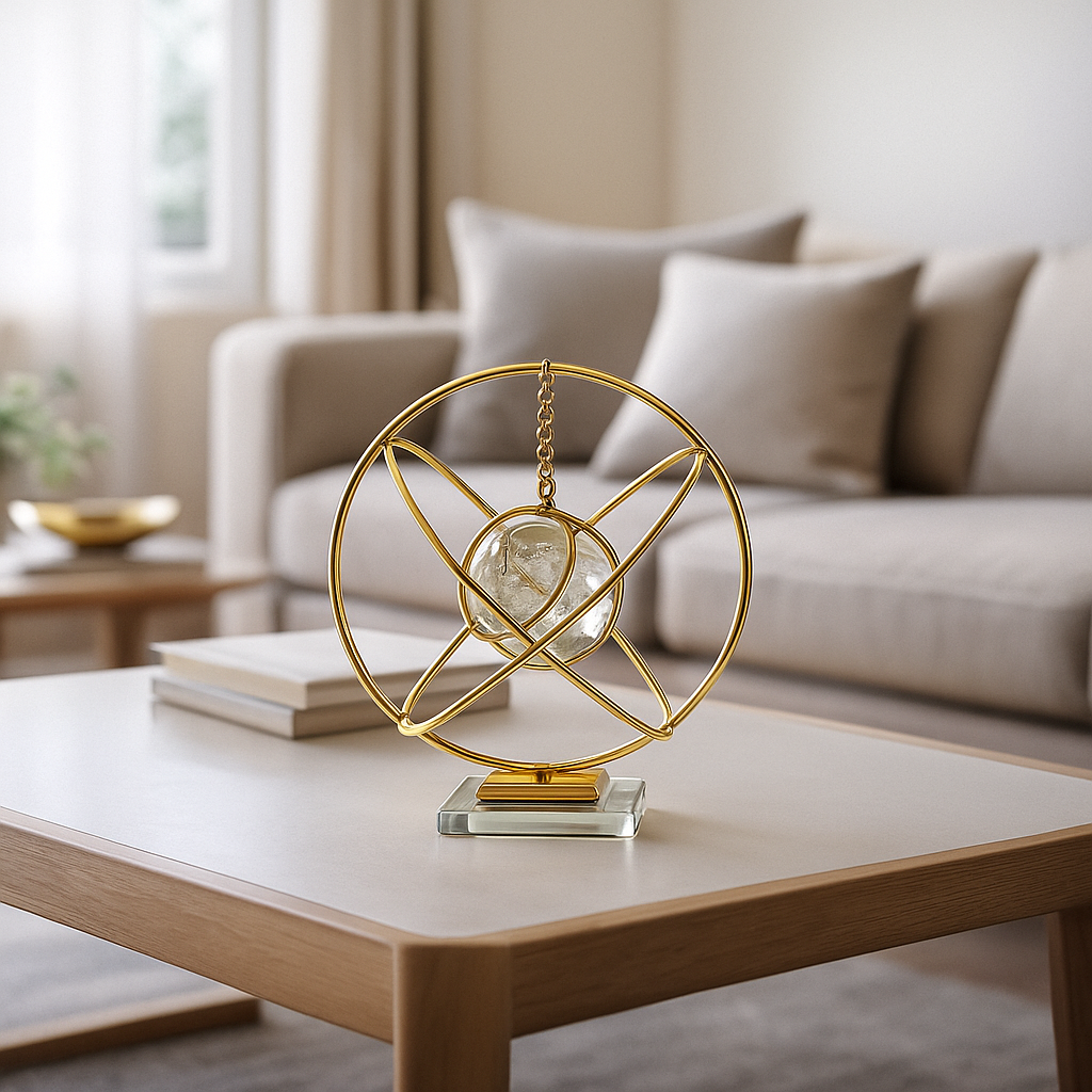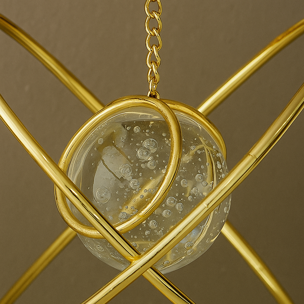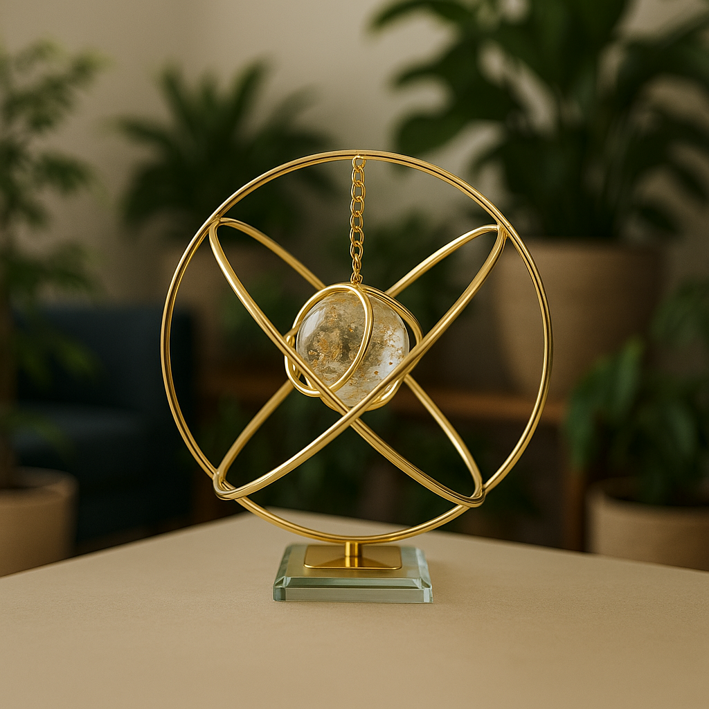 Esfera decorativa de Ferro Dourada com Centro de Vidro