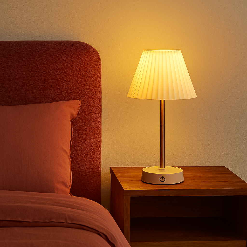 O Abajur de Plástico Moderno Ajustável MK Estrela é a solução perfeita para quem busca uma luminária compacta, funcional e com visual contemporâneo para transformar a iluminação de qualquer ambiente. Produzido em plástico resistente, oferece leveza, durabilidade e um acabamento sofisticado que combina facilmente com decorações modernas e minimalistas. Sua luz quente e suave cria um clima acolhedor, ideal para leitura, relaxamento ou para trazer mais conforto visual ao quarto, sala ou escritório. Com cúpula plissada que difunde a luminosidade de forma equilibrada e acionamento por toque sensorial na base, o uso se torna muito mais prático e intuitivo.