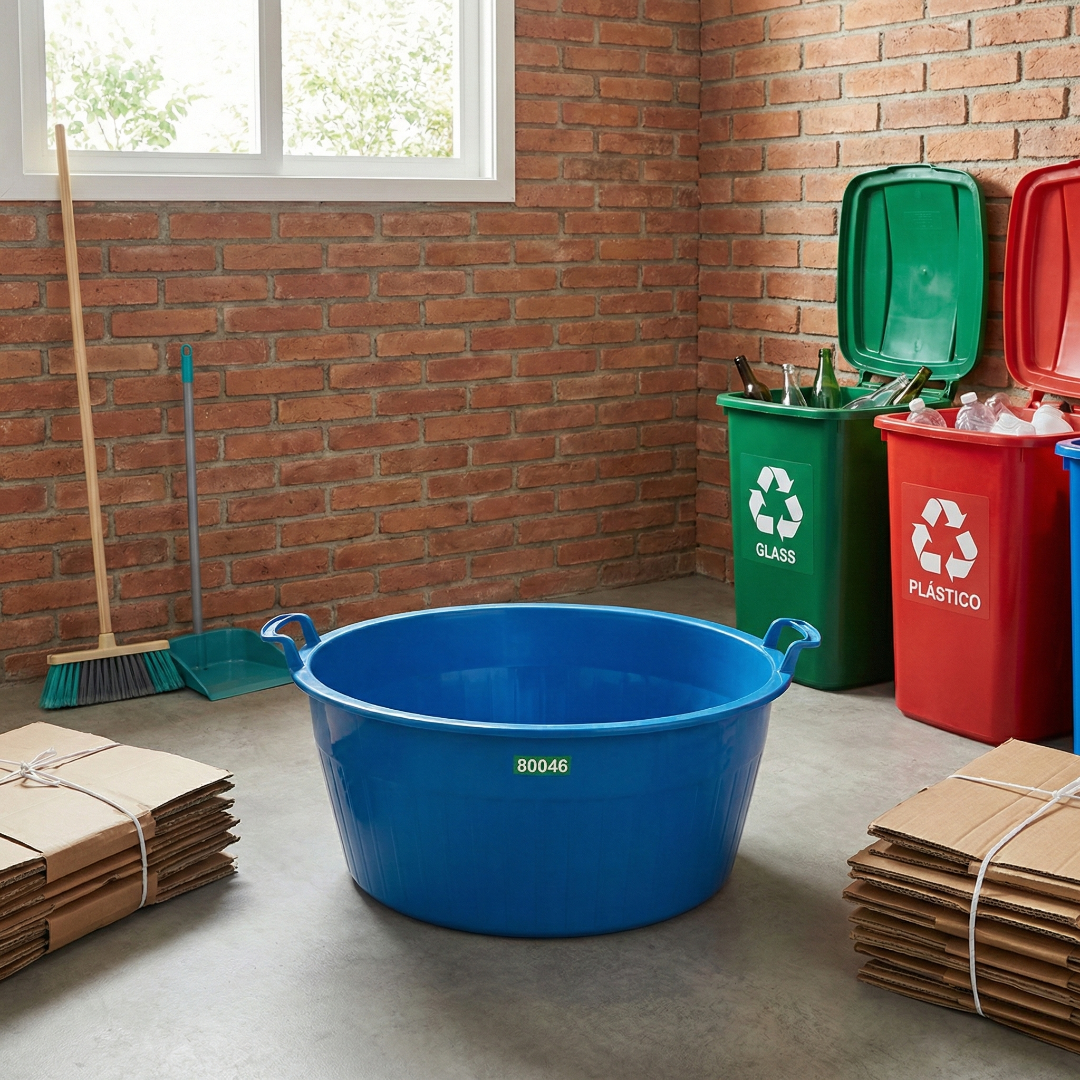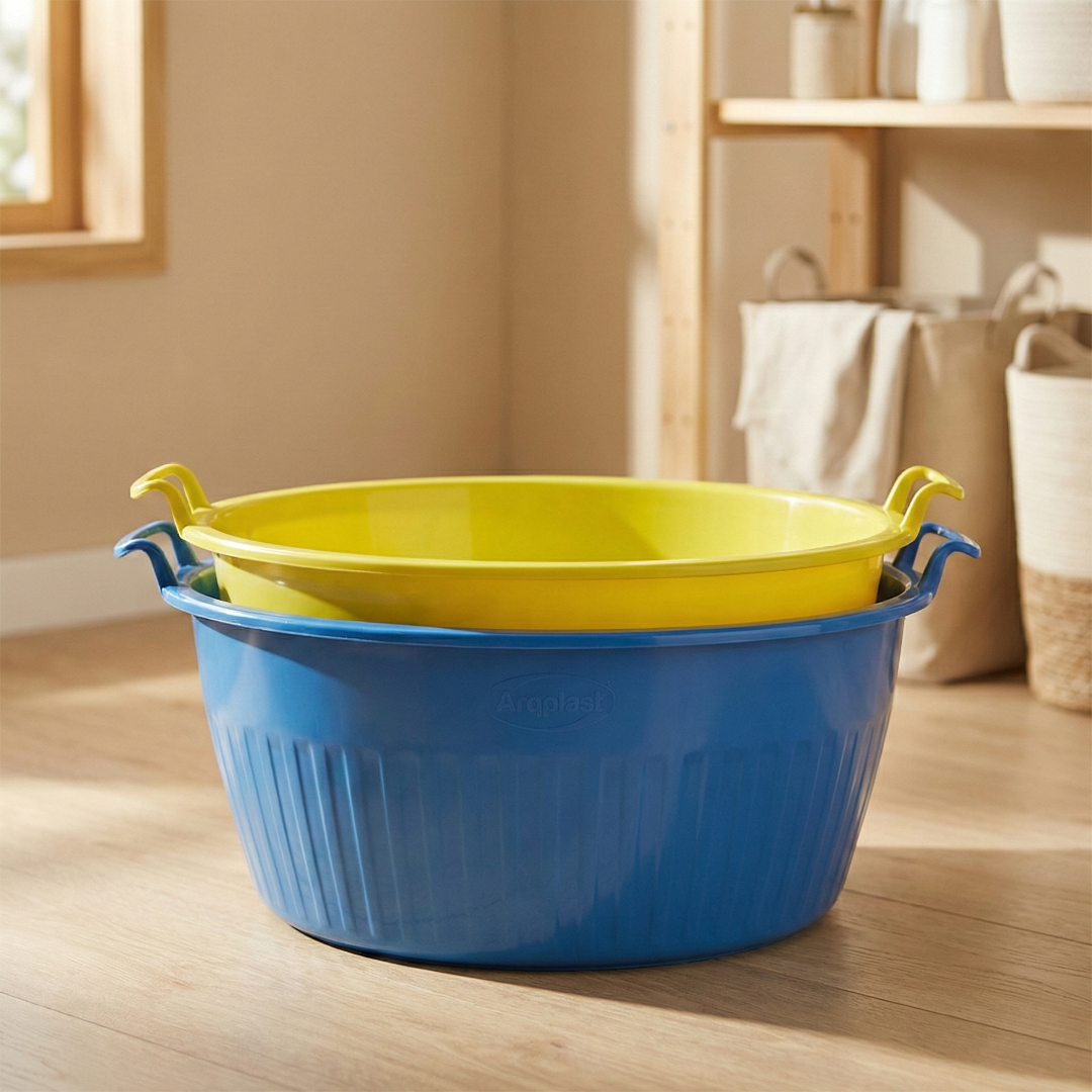Produzida pela Arqplast, esta bacia faz parte da linha sustentável focada em coleta seletiva e uso geral, sendo fabricada com polipropileno reciclado de alta qualidade. Isso confere à bacia plástica 80 litros uma resistência excepcional a impactos, peso e produtos químicos de limpeza. Suas paredes são grossas e o fundo é reforçado para não deformar quando cheia.
