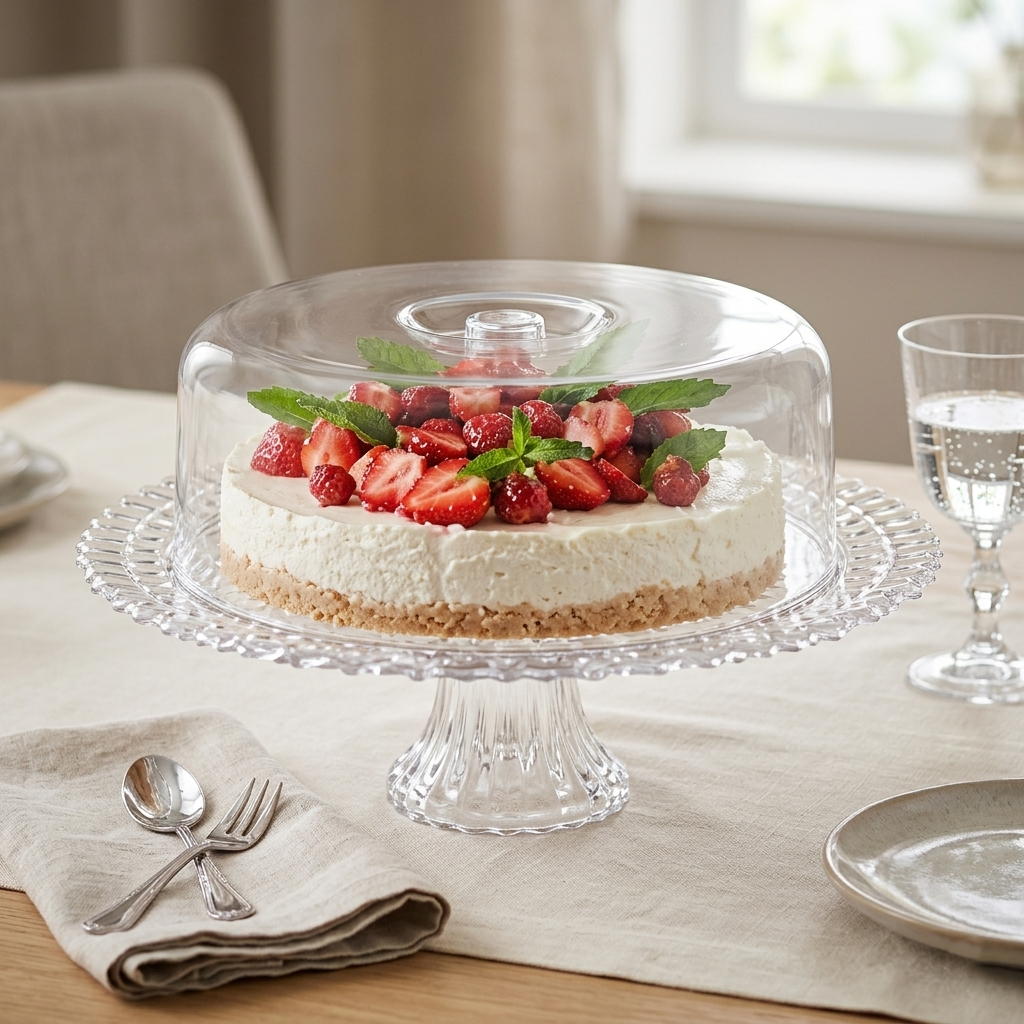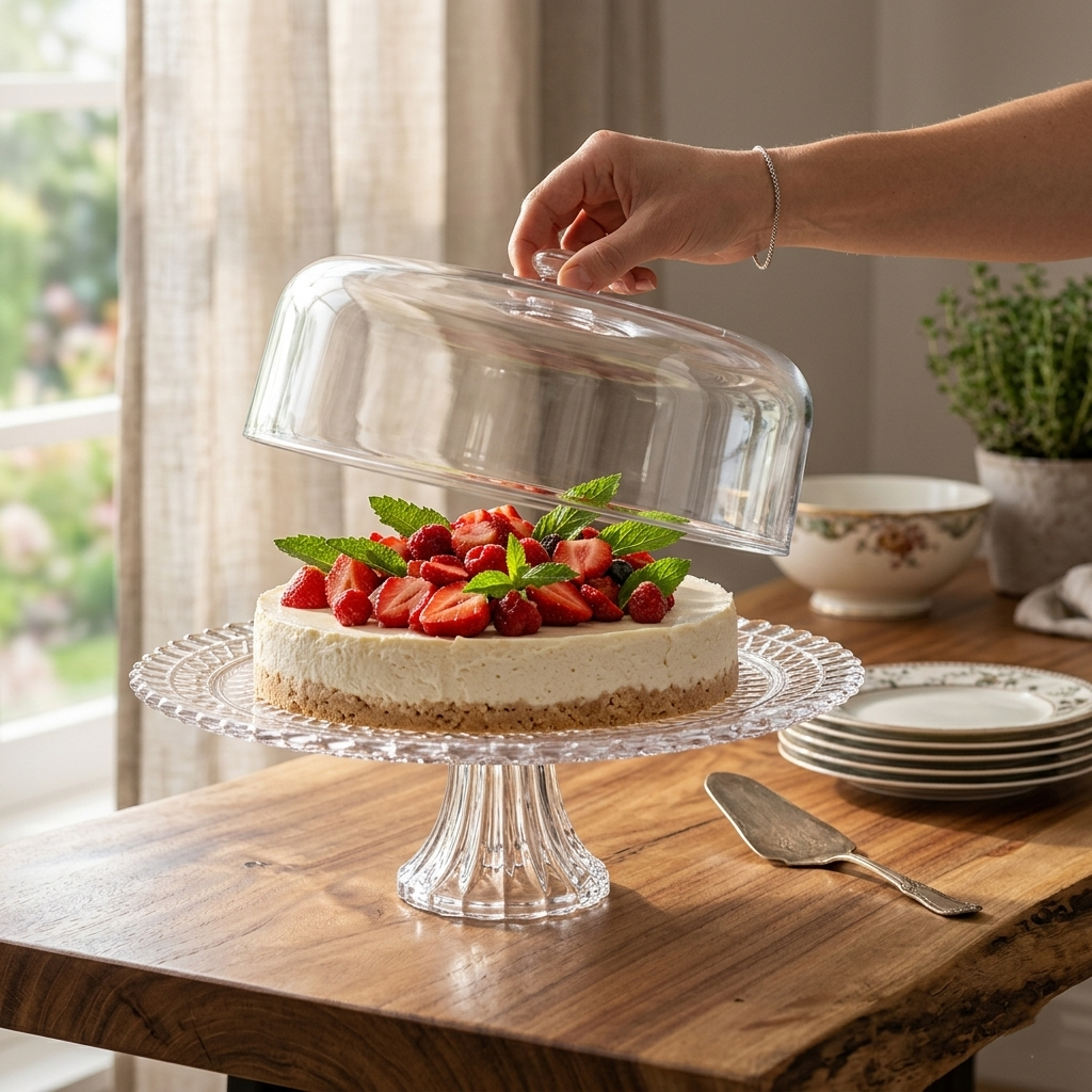 Tampa alta que protege o bolo sem danificar coberturas.