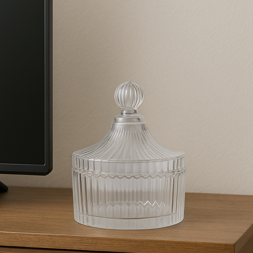 Bomboniere de Vidro com Tampa Decorada 10x11cm