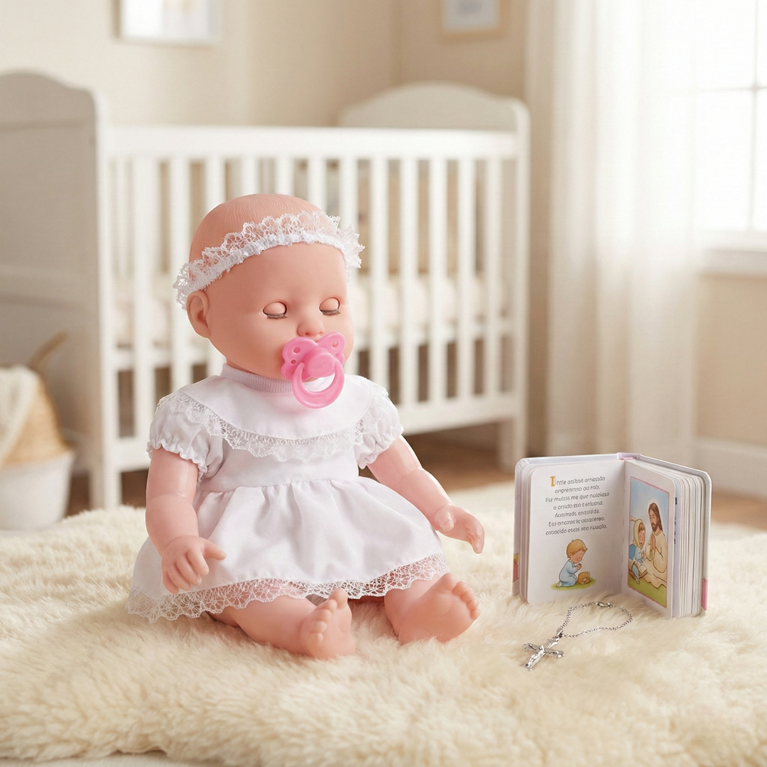 Perfeita para presentear em batizados ou datas especiais, ela se torna uma companheira inseparável. O mecanismo é fácil de acionar, permitindo autonomia na brincadeira. Ao ouvir a boneca que reza Little Baby, a criança aprende a oração facilmente, criando memórias afetivas enquanto se diverte com total segurança e conforto no dia a dia.
