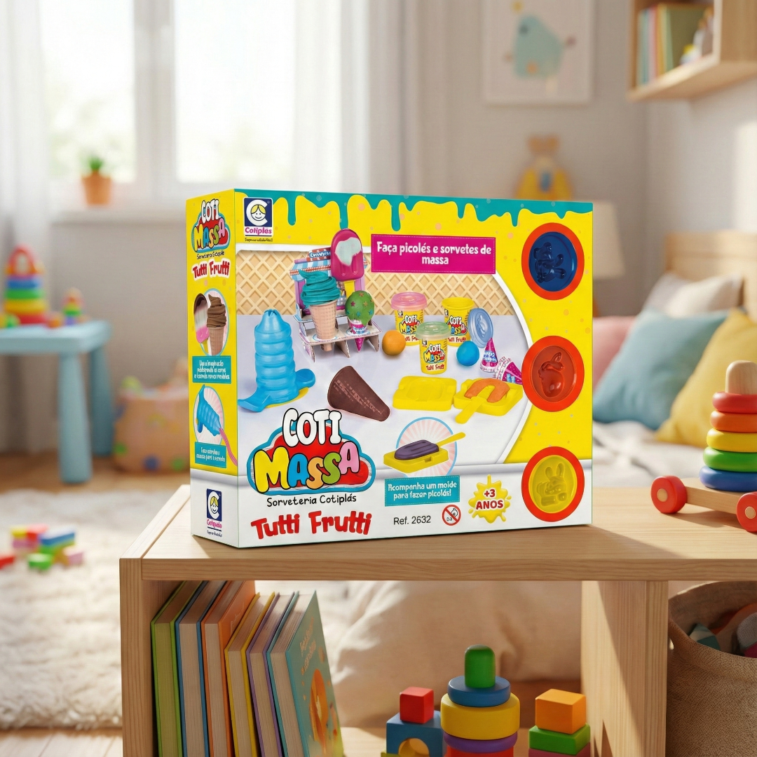 Crie os sorvetes mais divertidos, coloridos e cheirosos com o Brinquedo Coti Massa Tutti Frutti Sorveteria Cotiplás e transforme cada brincadeira em um momento inesquecível.