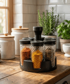 Se você busca um produto resistente, moderno e funcional para organizar seus temperos, este porta condimentos é a escolha ideal. A combinação entre vidro de qualidade, tampas inteligentes e base giratória faz dele um item indispensável para manter sua cozinha prática, higienizada e bonita. Além de ser extremamente útil, ele agrega um toque decorativo ao ambiente, valorizando ainda mais o espaço culinário.
