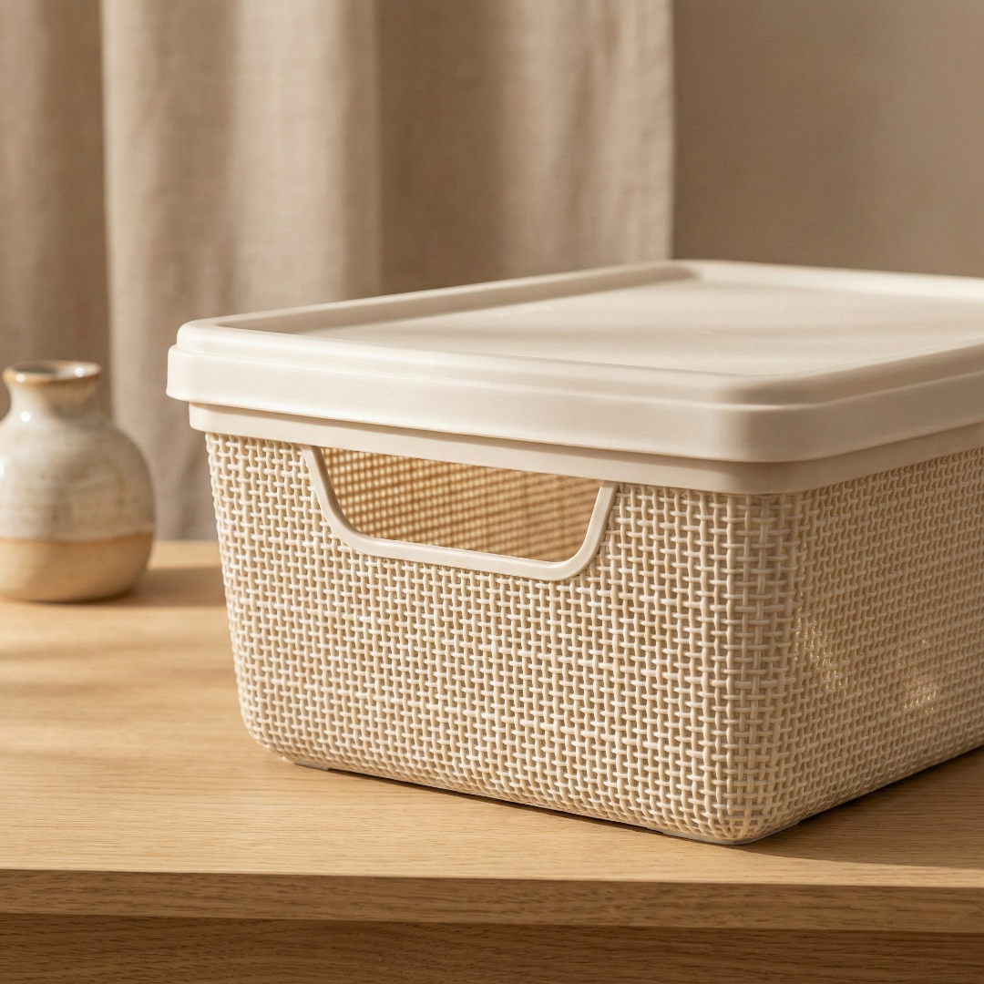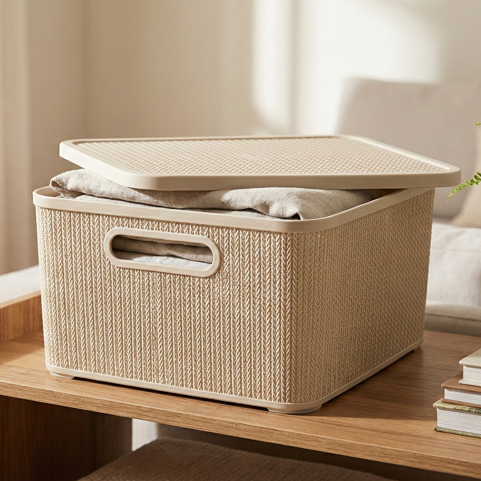 Fabricada pela Jaguar, a caixa une a beleza da textura à durabilidade do polipropileno. A caixa organizadora juta 5 litros é robusta, fácil de limpar e resistente à umidade, o que a torna superior às caixas de tecido ou papelão que se deterioram com o tempo. Acompanha uma tampa que encaixa perfeitamente, protegendo o conteúdo contra poeira e permitindo o empilhamento de múltiplas unidades para otimizar o espaço vertical.