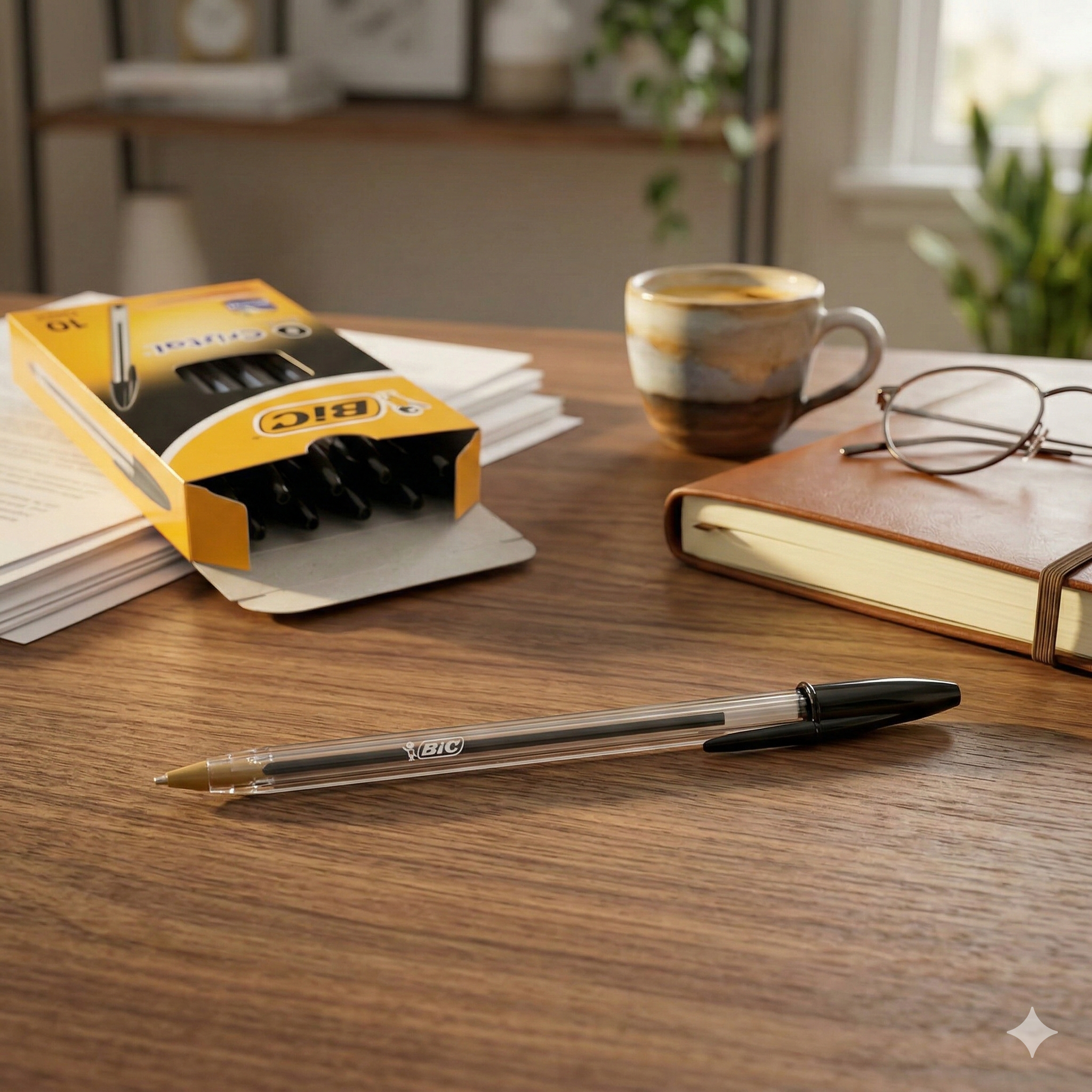 A Caneta Bic Cristal Preta Tradicional é sinônimo de qualidade e confiança em todo o mundo, sendo a escolha número um para estudantes, profissionais e uso doméstico. Com sua escrita macia e o icônico corpo hexagonal que não rola na mesa, ela oferece conforto e precisão incomparáveis para todas as suas anotações, garantindo legibilidade e praticidade no dia a dia.