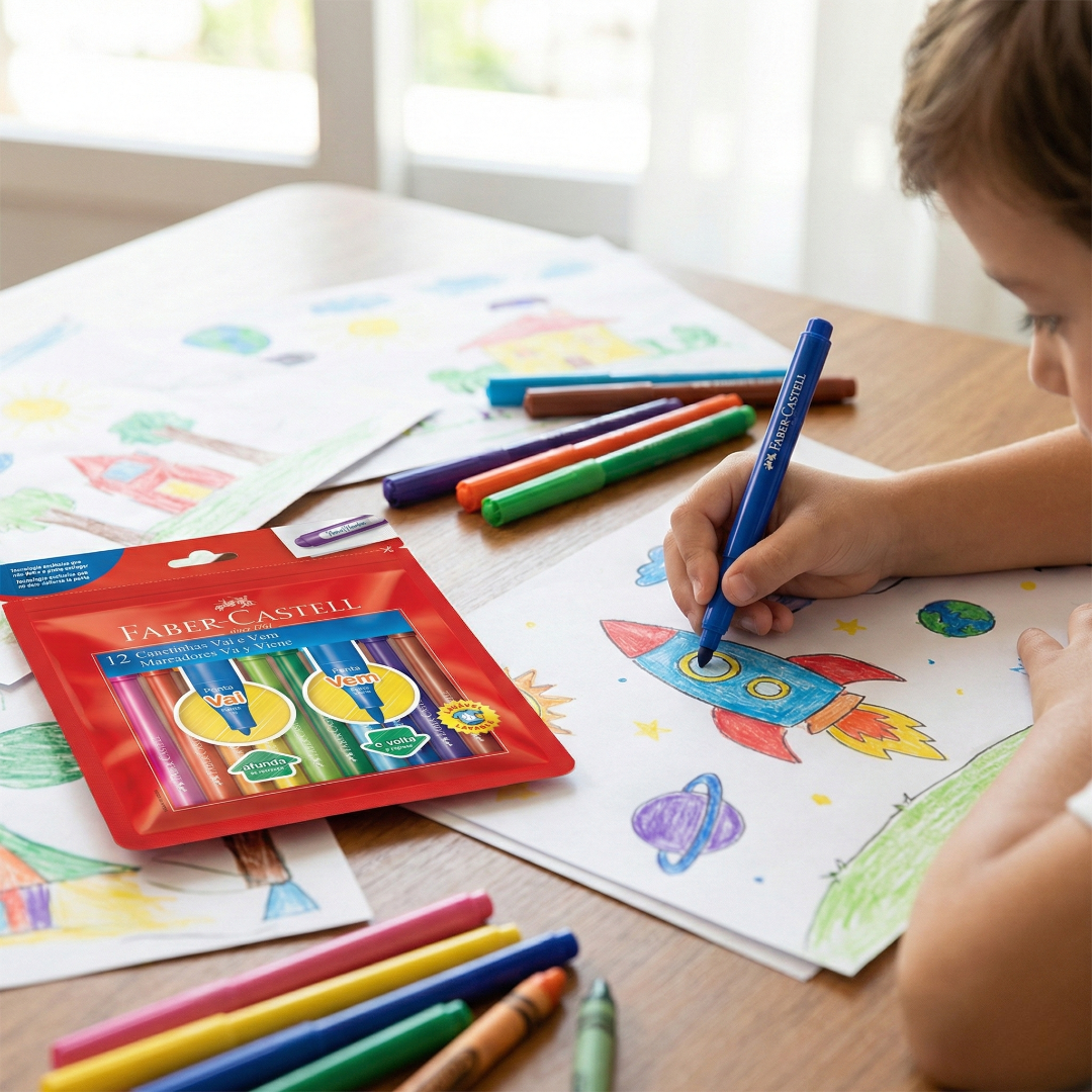 Desperte a criatividade escolar e proporcione momentos de pura diversão no desenho com a excelência da Faber-Castell, que apresenta a sua inovadora canetinha vai e vem 12 cores em estojo com doze cores vibrantes. Este material icônico é a escolha definitiva para quem busca eficiência técnica no uso estudantil em escala doméstica, permitindo que as crianças desenhem e pintem com total segurança e agilidade sem danificar a ponta das canetas. Com um design moderno e sistema de ponta retrátil, a peça incentiva o prazer de criar artes incríveis e garante horas de durabilidade no uso diário intenso, tornando-se o coração do estojo para todas as atividades pedagógicas do dia com máxima economia técnica constante em cada traço escolar.