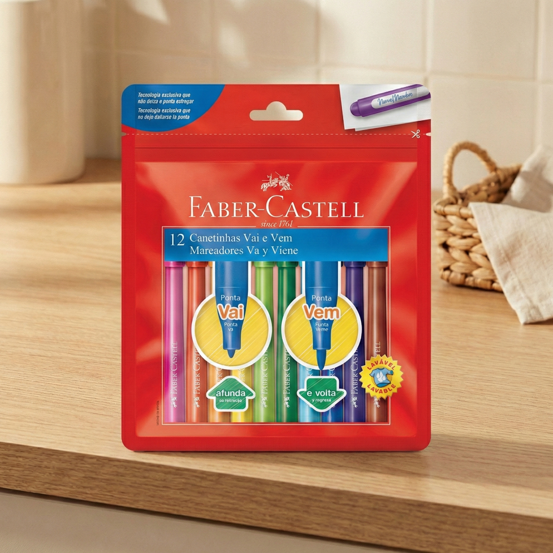 Ao adquirir a canetinha vai e vem, você garante um item de utilidade escolar que estimula o prazer de aprender através da facilidade de escrita e eficiência artística superior. Sua estrutura compacta permite uma organização fácil na mochila, mantendo o material pronto para a próxima aventura criativa ou desafio pedagógico. Invista na funcionalidade de um produto de líder de mercado que entende o segredo da durabilidade em materiais de desenho. Garanta alegria e momentos inesquecíveis com a qualidade inconfundível que só os produtos nacionais da Faber-Castell podem oferecer para o desenvolvimento de uma rotina saudável, assegurando que o brilho das suas obras seja sempre preservado com total agilidade e segurança técnica diária em todos os processos de criação manual com máxima sofisticação técnica em seu dia a dia escolar para o seu bem-estar absoluto diário.