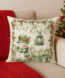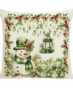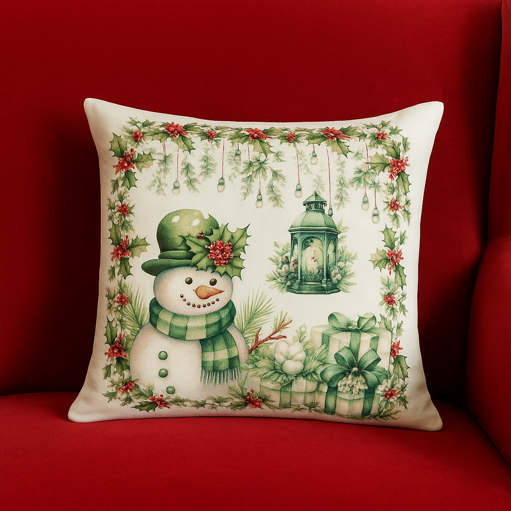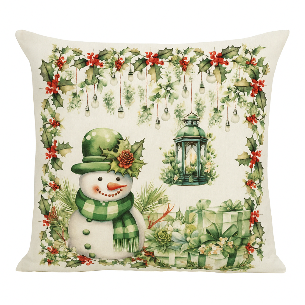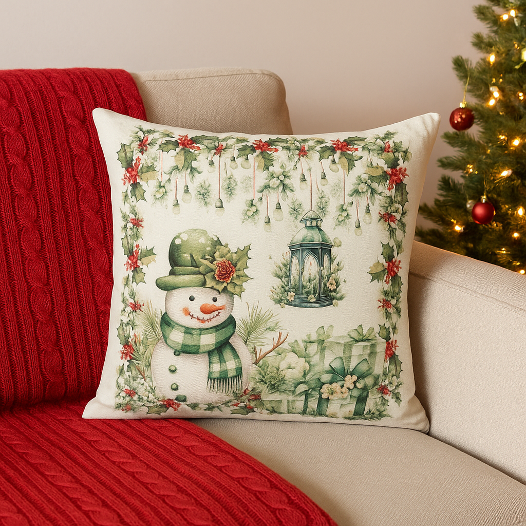 Capa de Almofada Natalina com Estampa de Boneco de Neve Decoração de Natal