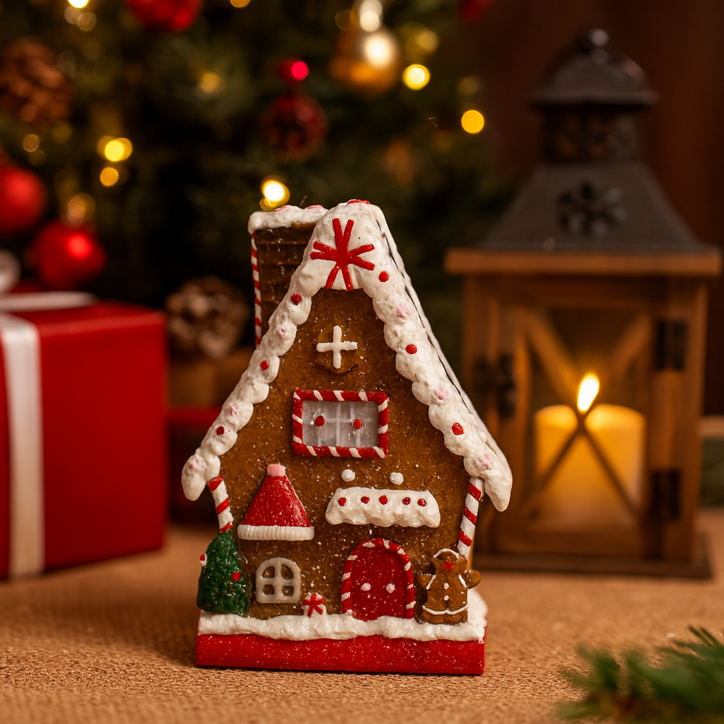 A Casinha Gingerbread de Resina é perfeita para quem ama o espírito natalino e quer trazer um toque de fantasia e tradição à decoração. Combine-a com outros enfeites natalinos, guirlandas, pinheiros ou luzes pisca-pisca para criar um cenário mágico e inesquecível.