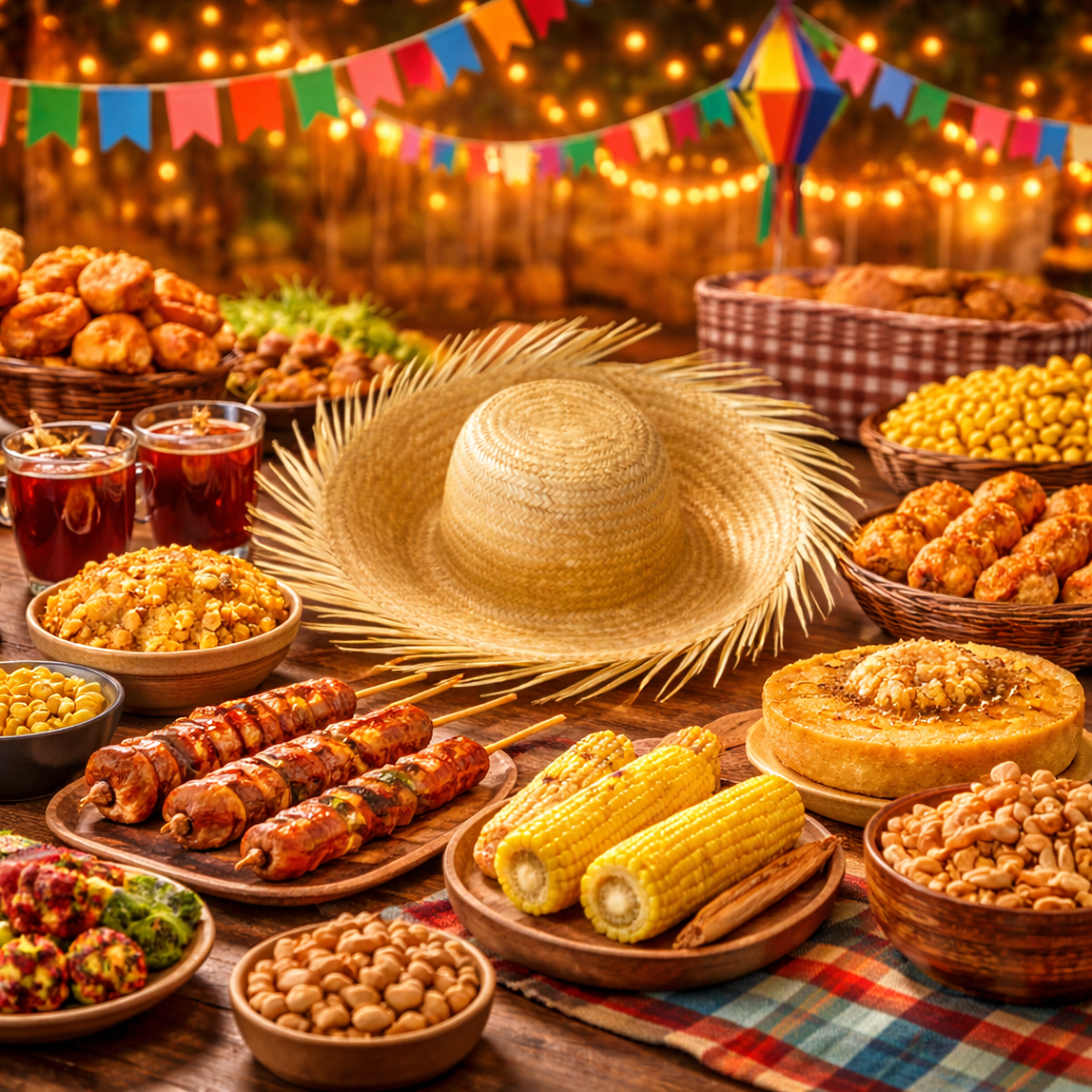 Estilo Tradicional: Visual clássico caipira que valoriza fantasias típicas e temáticas juninas.