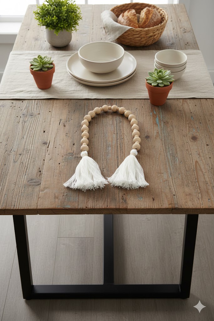 Design Boho Artesanal: O Colar Decorativo Boho para Mesas apresenta estética natural e feita à mão, ideal para decorações autênticas.