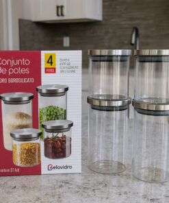 Conjunto 4 Potes de Vidro Tampa Inox Belovidro – Jogo com 4 potes resistentes, ideais para armazenar alimentos com segurança e elegância na sua cozinha.