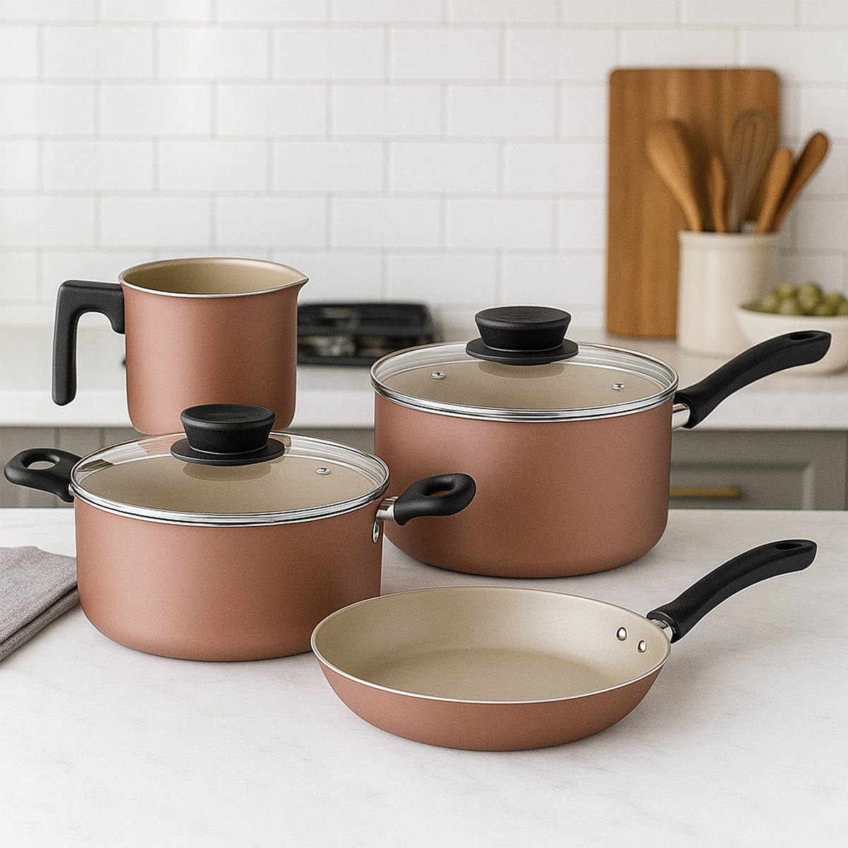 Conjunto de Panelas Tramontina Linz 4 Peças Tramontina – peças em alumínio com antiaderente Starflon Max Mocaccino, praticidade e design elegante para sua cozinha.