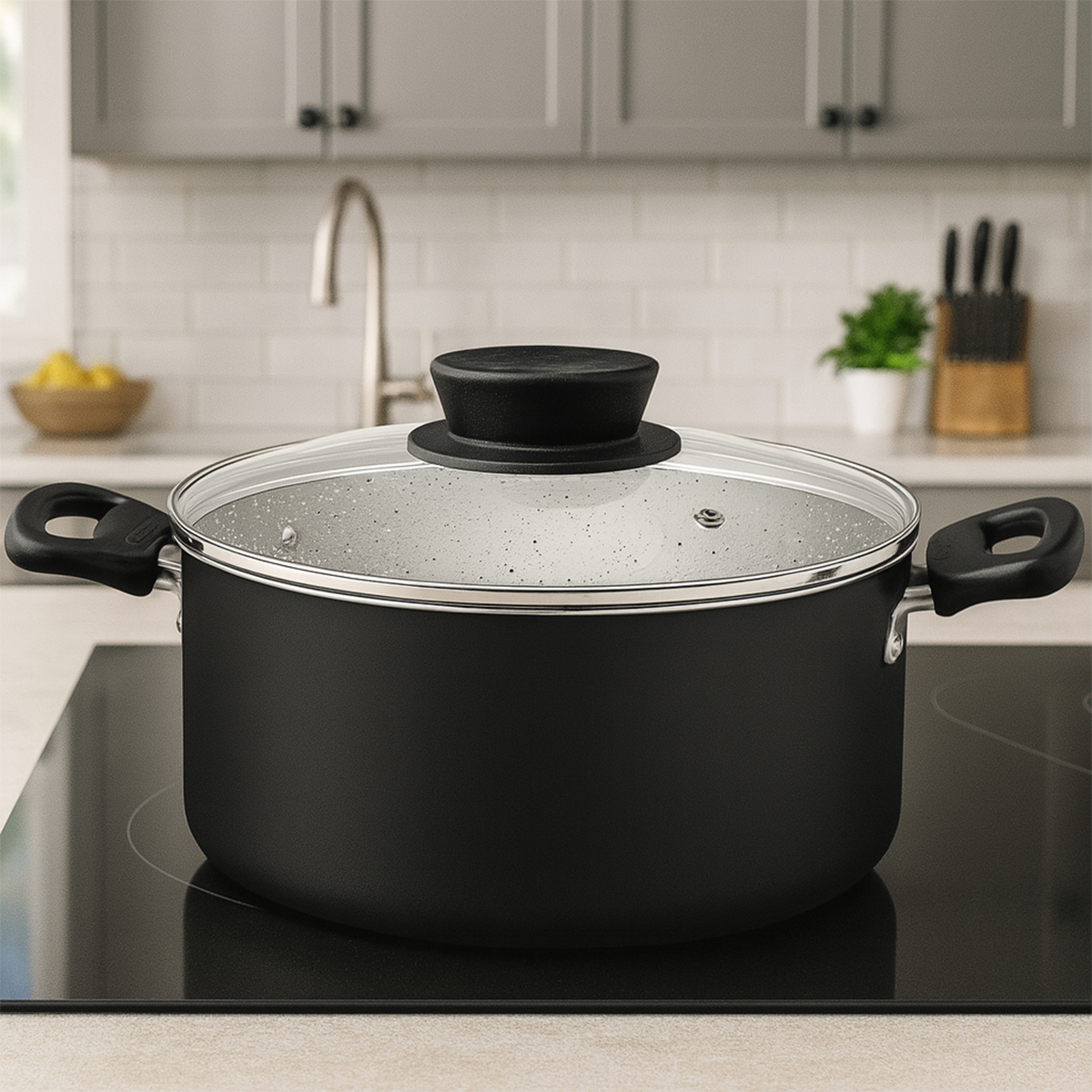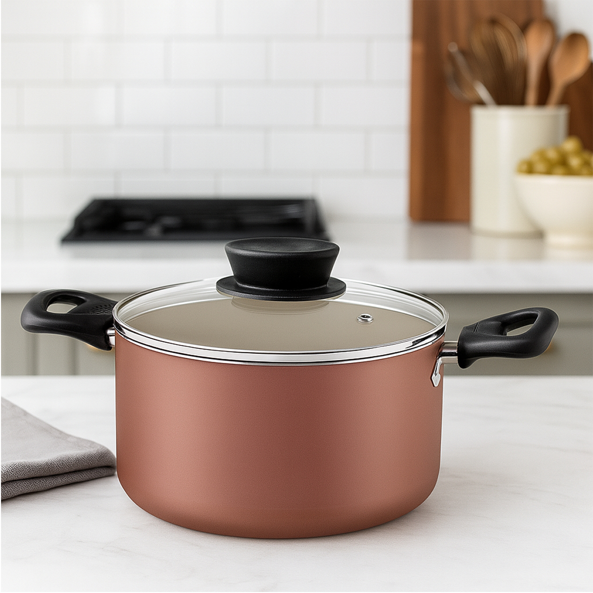 Todas as peças contam com cabos e alças antitérmicos, que tornam o manuseio mais seguro. Compatíveis com fogões a gás, elétricos e vitrocerâmicos, oferecem versatilidade para diversos tipos de cozinha.