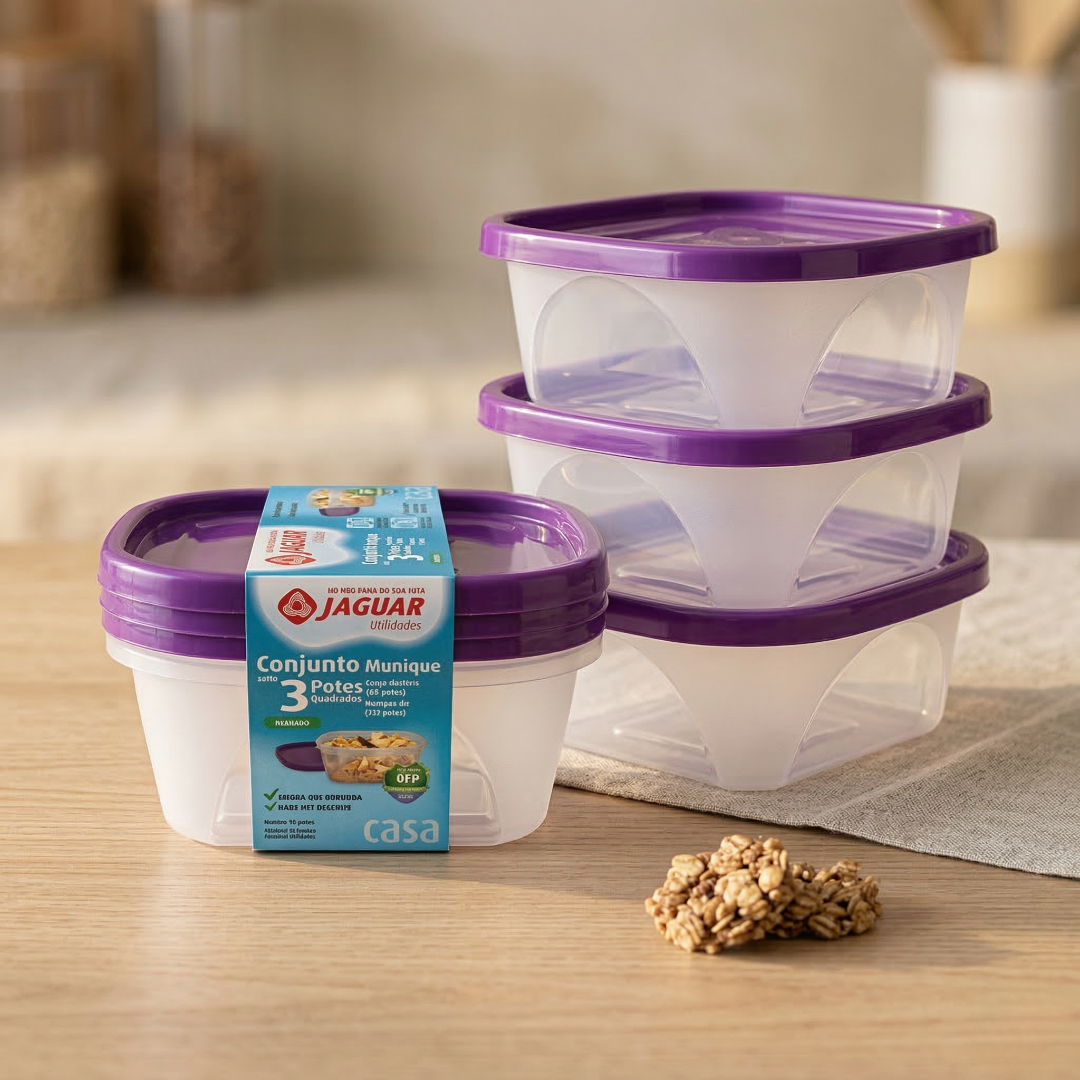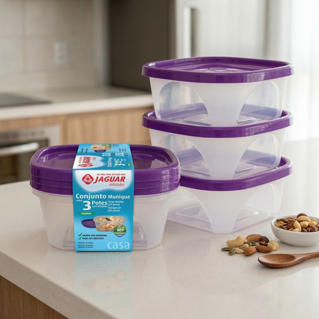 Sua cozinha merece organização e eficiência com o Conjunto Munique 3 Peças com Cinta, essencial para manter mantimentos conservados por mais tempo. Produzido pela Jaguar Utilidades, este kit oferece vedação de alta qualidade e resistência. É perfeito para quem busca praticidade no armazenamento com segurança.