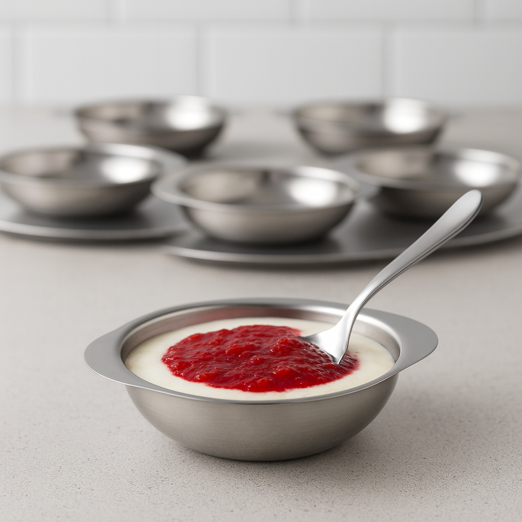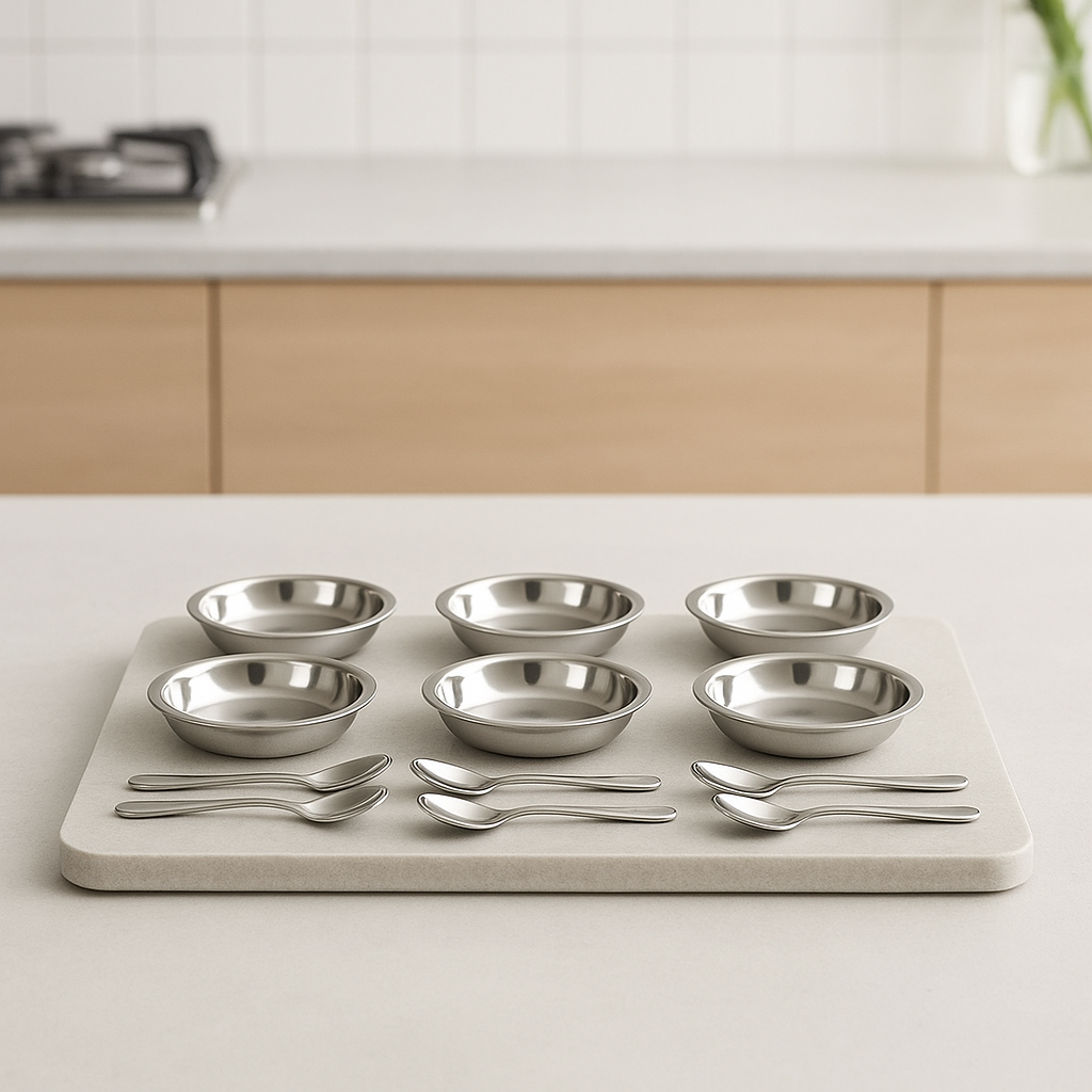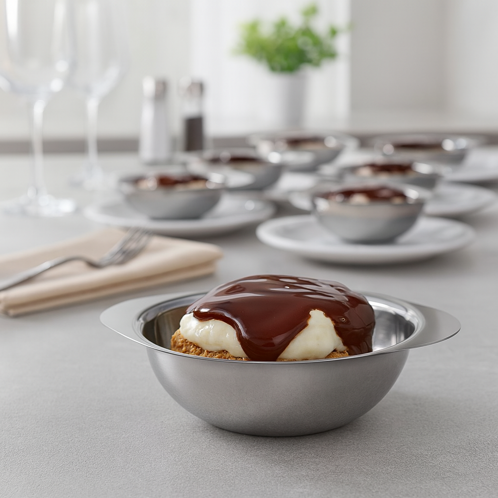 Conjunto de Tigelas de Sobremesa12 Peças em Aço Inox é a escolha ideal para quem busca elegância, praticidade e durabilidade na hora de servir doces, frutas, mousses e pequenas porções com estilo. Produzido em aço inox de alta qualidade, este conjunto oferece resistência superior, não oxida e mantém o brilho mesmo após o uso frequente. Composto por 6 tigelas e 6 colheres, funciona perfeitamente como um pote sofisticado para sobremesas individuais, valorizando a apresentação à mesa em refeições do dia a dia ou ocasiões especiais. Seu design moderno combina com diversos estilos de cozinha e mesa posta, enquanto o acabamento liso facilita a limpeza e garante mais higiene no uso diário. Ideal para uso doméstico, eventos, recepções ou como opção de presente funcional e elegante, este conjunto une estética e funcionalidade em cada detalhe.