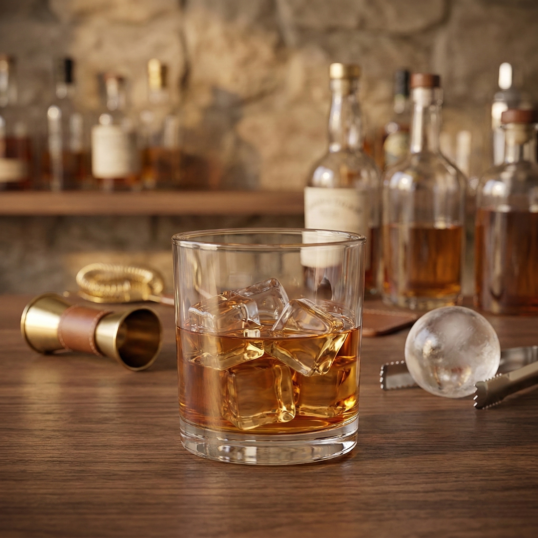 Design clássico ideal para servir whisky e drinks rocks.