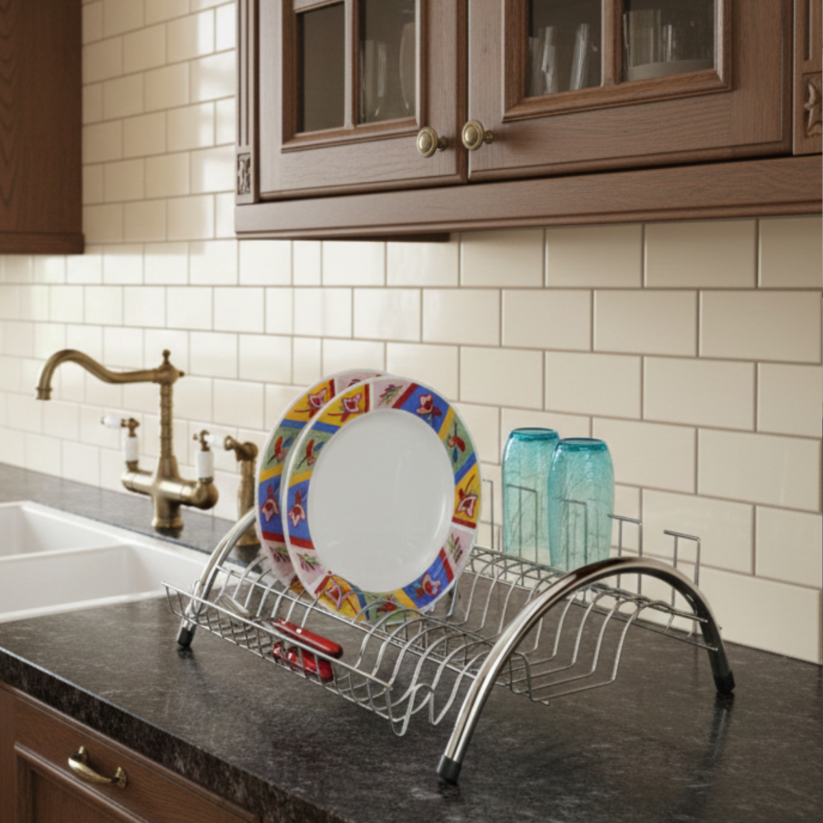 Design Funcional: O formato em arco do Escorredor De Louça Arco Cromado proporciona melhor distribuição dos utensílios, otimizando o espaço da pia.