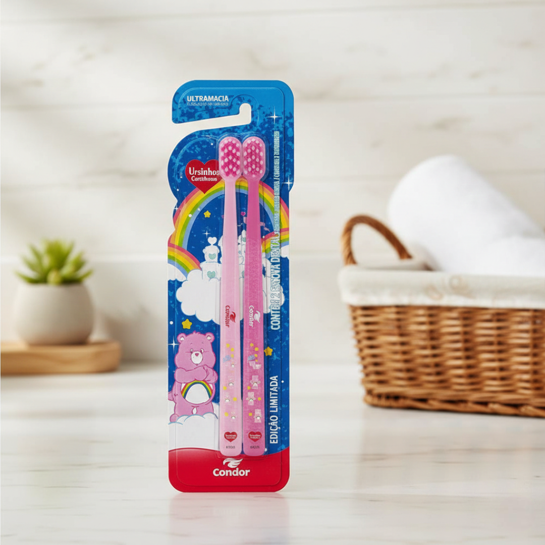 Transforme a obrigação da higiene bucal em um momento de pura diversão, aprendizado e carinho com a escova de dente infantil Condor da linha especial Ursinhos Carinhosos, desenvolvida com tecnologia para proteger o sorriso delicado das crianças.