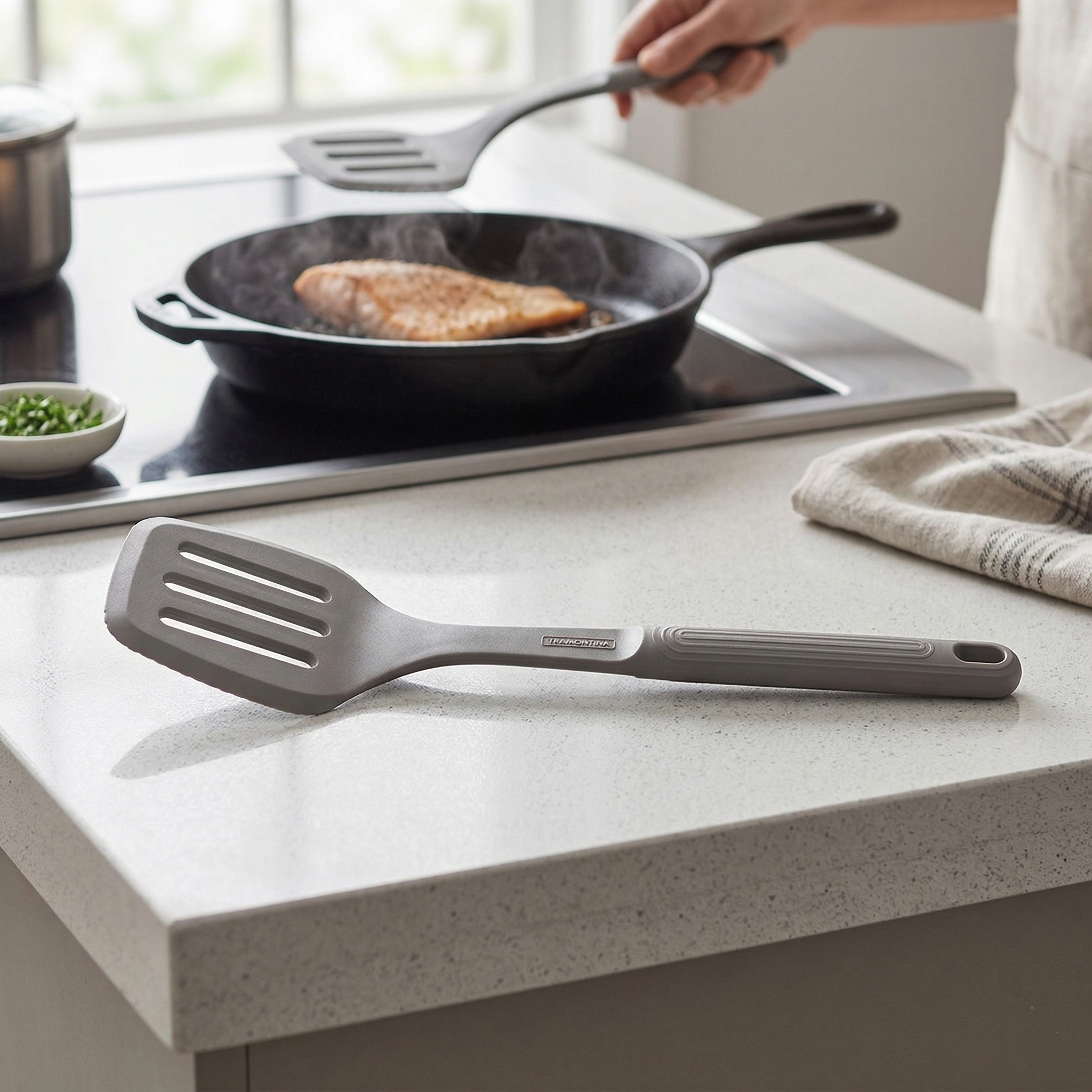 Eleve a performance da sua cozinha e garanta a integridade dos seus revestimentos antiaderentes com a espátula de silicone cinza tramontina da prestigiada linha Softta. Este utensílio gourmet foi projetado para oferecer versatilidade máxima, sendo ideal para virar carnes, legumes e ovos, permitindo que o excesso de gordura escorra de forma eficiente através de seu design vazado técnico. Sua tonalidade cinza moderna traz uma estética minimalista e profissional para sua bancada, transformando o ato de cozinhar em uma experiência muito mais segura, limpa e prazerosa em sua residência familiar com total agilidade e eficiência cotidiana.