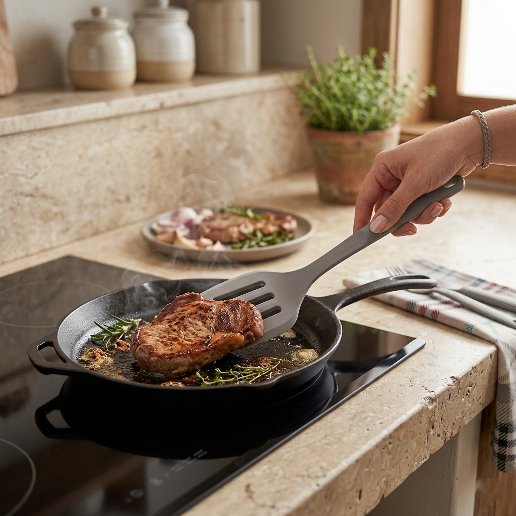 Fabricada pela líder mundial Tramontina, esta peça é produzida com silicone de alta performance reforçado com alma interna de nylon. A espátula de silicone cinza tramontina destaca-se pela sua incrível resistência térmica, suportando temperaturas de até 210°C sem sofrer deformações estruturais ou derretimento. Ao utilizar este acessório, você tem a garantia de não riscar as superfícies de Starflon ou cerâmica das suas panelas favoritas, prolongando a vida útil do seu jogo de cozinha. O cabo ergonômico conta com tecnologia Soft Touch, oferecendo um toque aveludado e uma pegada firme, unindo a durabilidade mecânica com a eficiência necessária para o uso intenso diário na sua rotina gastronômica organizada.