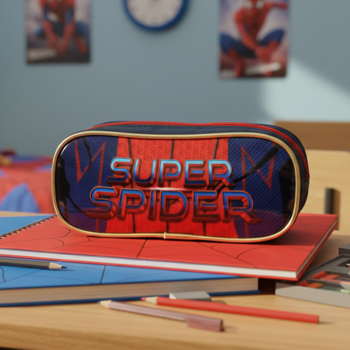 O Estojo Escolar Super Spider é a escolha ideal para crianças que adoram o universo dos super-heróis e precisam de praticidade no dia a dia escolar. Desenvolvido para organizar lápis, canetas, borracha e outros materiais essenciais, este estojo oferece funcionalidade aliada a um visual moderno e divertido. Produzido em material resistente, garante maior durabilidade mesmo com uso frequente na escola, cursos ou atividades em casa. Seu design exclusivo do Super Spider estimula a criatividade e torna a rotina escolar mais empolgante, sendo perfeito para uso diário por crianças em idade escolar.