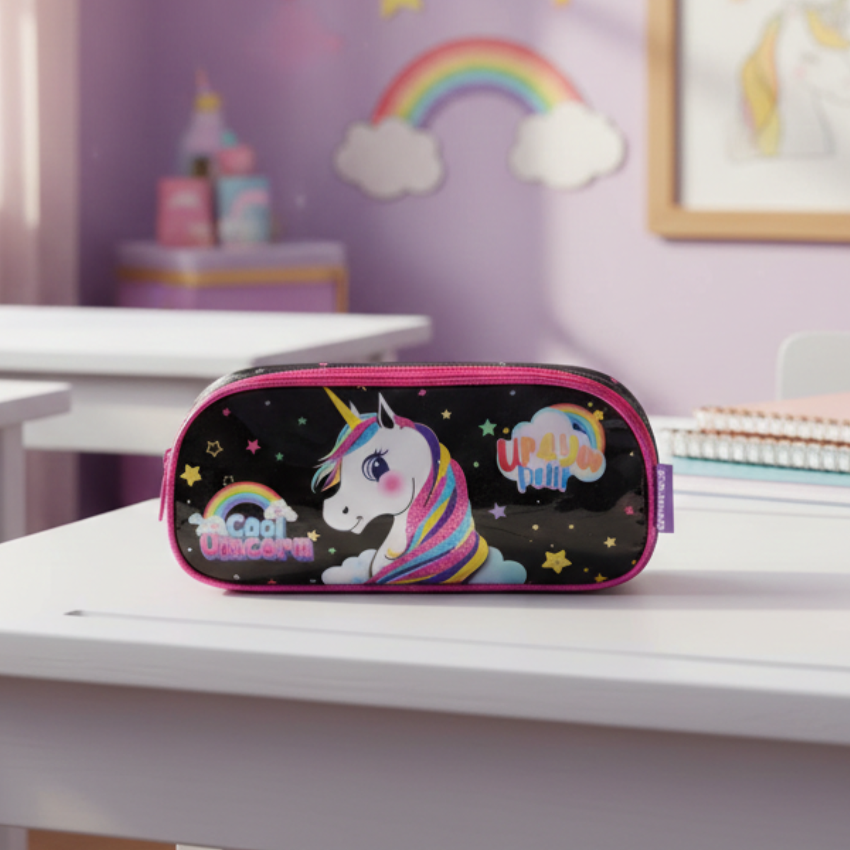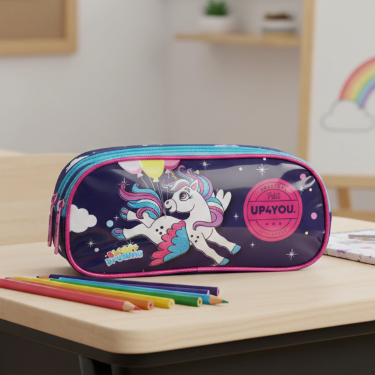 O Estojo Infantil Up4You Unicórnio é perfeito para acompanhar a criança em todas as fases da escola, unindo praticidade, resistência e um visual que encanta.