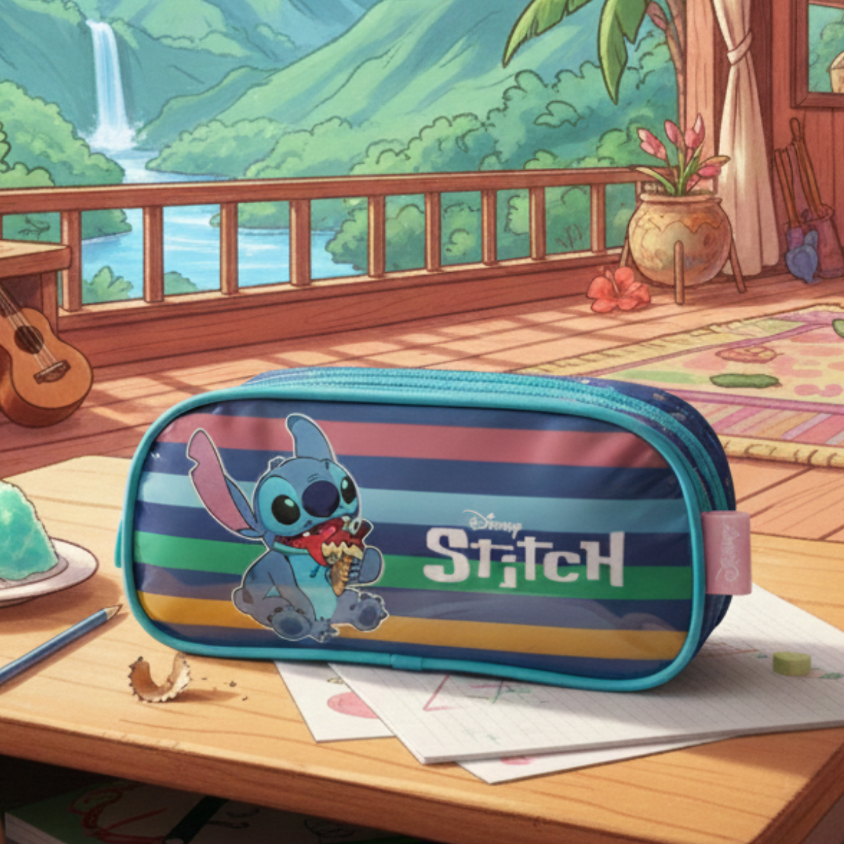 Design Temático: Visual alegre e colorido que destaca o personagem Stitch, tornando o Estojo ainda mais atrativo para crianças.