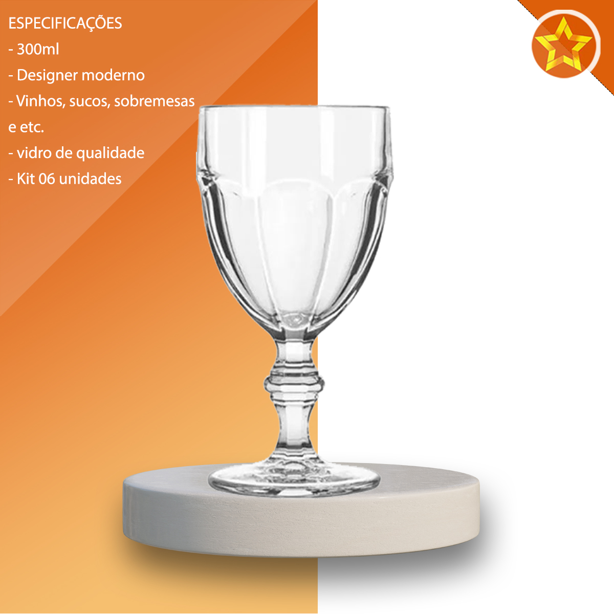 Produto (contém): 6 taças de vidro