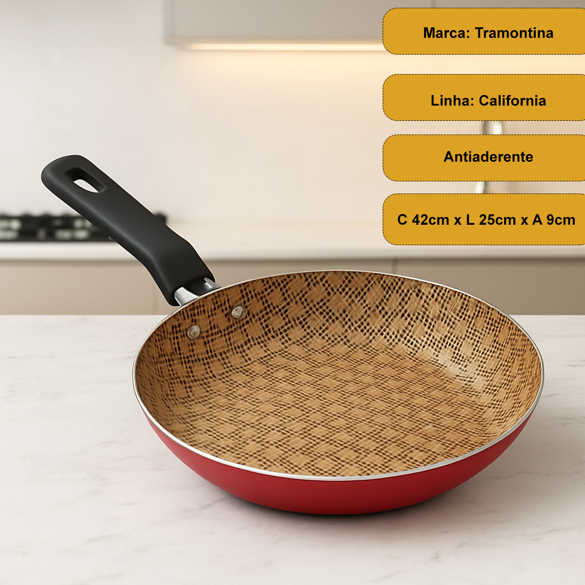 O grande diferencial da linha Tramontina Califórnia está na combinação de design moderno e funcionalidade. O revestimento antiaderente Starflon é altamente durável, fácil de limpar e ainda mantém a beleza do produto por muito mais tempo, mesmo após o uso frequente;