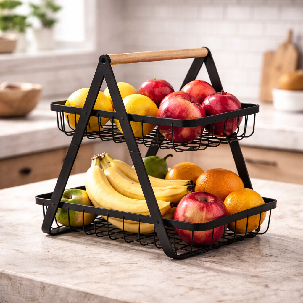 Design Funcional: Estrutura em dois andares que otimiza o espaço e facilita a organização das Fruteira dos alimentos.