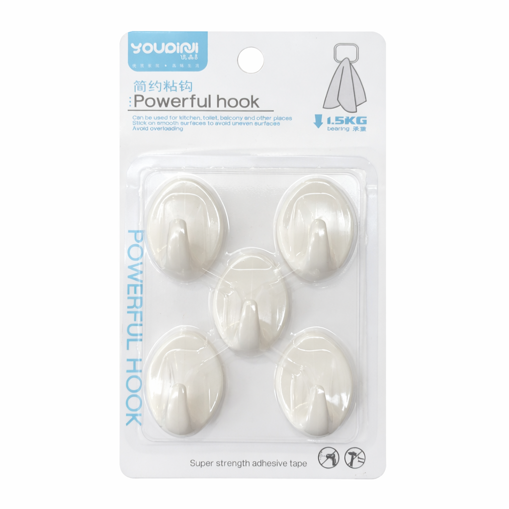 Produto (contém): 5 unidades de Gancho Adesivo de Plástico Multiuso