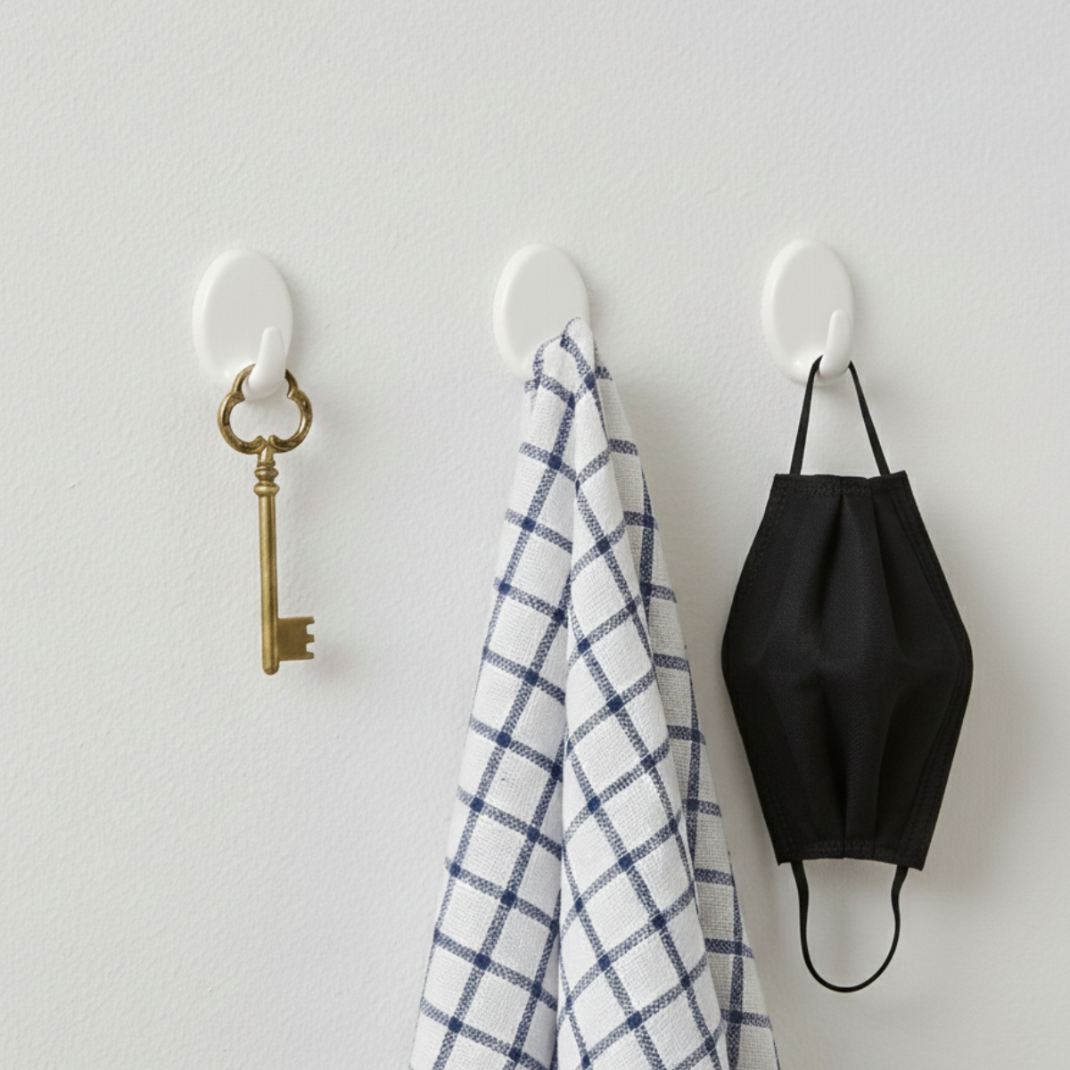Uso versátil: Ideal como gancho para cozinha, banheiro, lavanderia e organização geral.