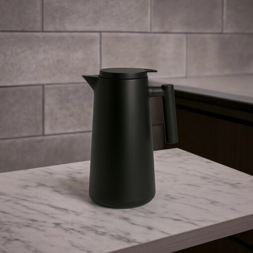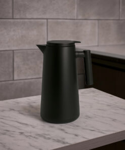 O sistema de tampa rosqueável com vedação segura evita vazamentos e mantém a temperatura interna de forma eficiente. O bico anatómico permite servir com precisão, evitando respingos e desperdícios. Graças ao seu design ergonómico e base estável, a garrafa pode ser usada com confiança em qualquer superfície.
