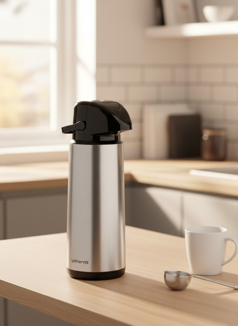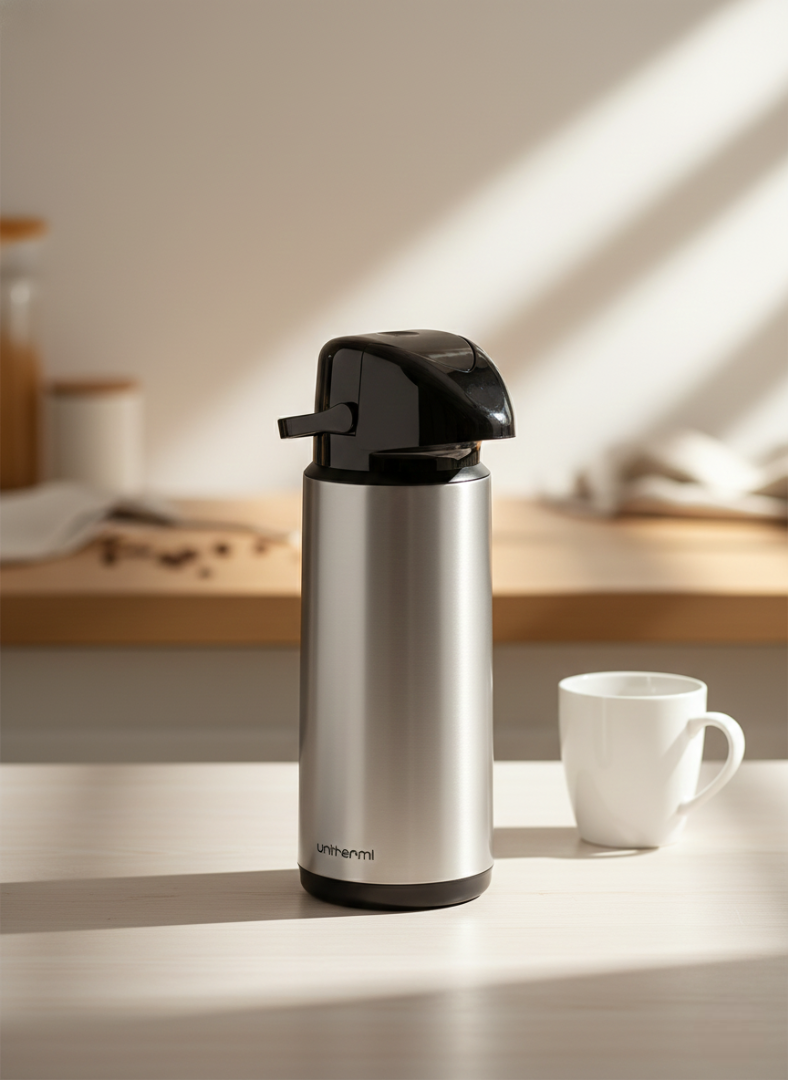 Ter esta garrafa térmica de pressão 1.8l significa otimizar o tempo e manter o café quente. Sua base permite servir com agilidade em eventos ou escritórios. Invista em eficiência e durabilidade para seu uso diário com sofisticação em cada detalhe.