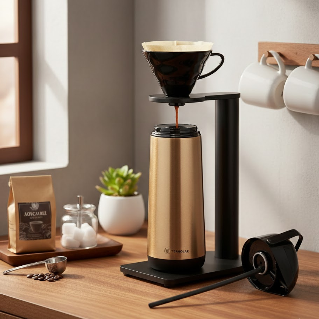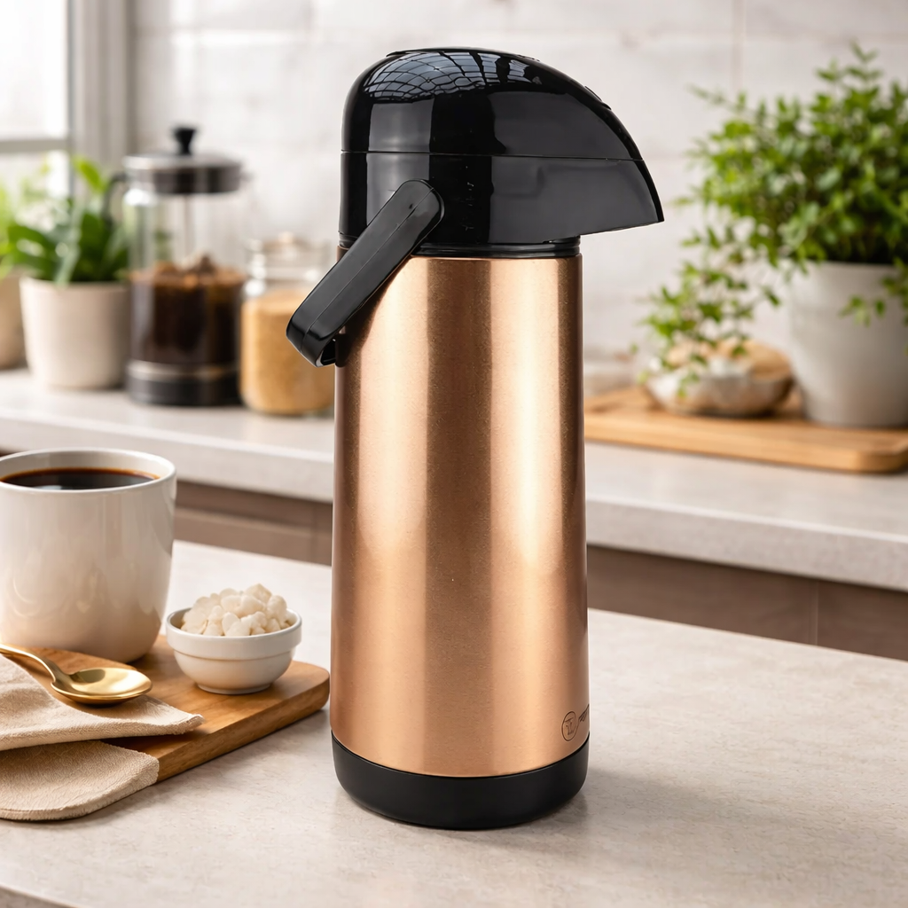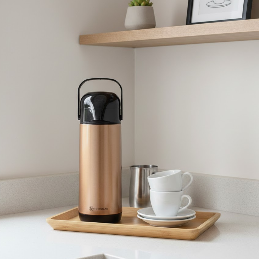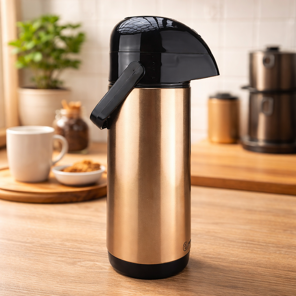 A Garrafa Termica Inox Gold 1L Lumina Termolar é ideal para quem busca praticidade, elegância e eficiência na conservação de bebidas quentes ou frias. Com design moderno e acabamento liso na cor dourada, ela se adapta perfeitamente a cozinhas, escritórios, áreas gourmet e ambientes corporativos. Seu corpo em inox garante resistência, enquanto a ampola de vidro interna proporciona excelente desempenho térmico, mantendo líquidos quentes por até 12 horas e frios por até 24 horas. O sistema de servir com bomba de pressão oferece um jato forte e estável, facilitando o uso no dia a dia. Livre de BPA e fabricada com material atóxico, é uma opção segura para toda a família, funcionando também como bule térmico ou garrafa térmica para café, chá, água ou outras bebidas.
