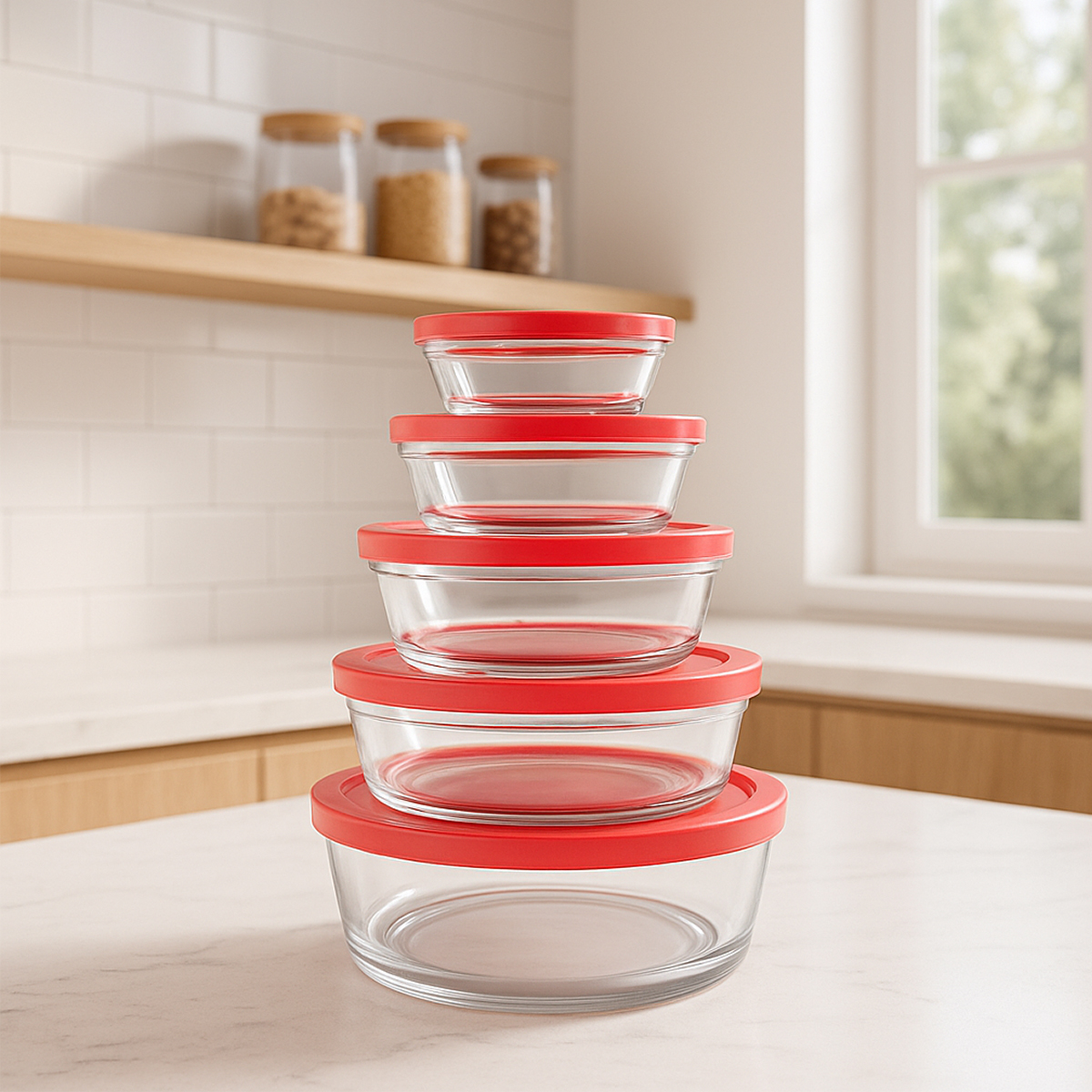 Tenha mais organização, praticidade e conservação na sua cozinha com o Kit 5 Tigelas de Vidro com Tampa. Com design funcional e elegante, esse conjunto é ideal para armazenar alimentos com segurança, seja na geladeira, no freezer ou para levar à mesa com estilo;