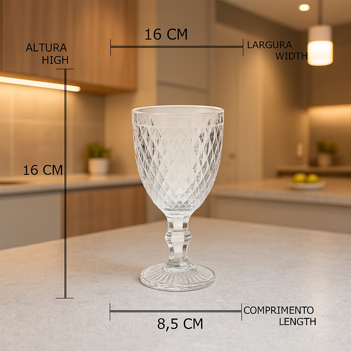 Jogo 6 taças vidro bico abacaxi 325ml Wellmix