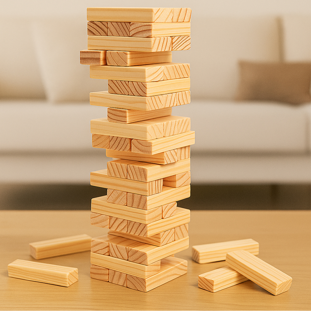 Estimula interação social, desafia a habilidade de manter a torre estável