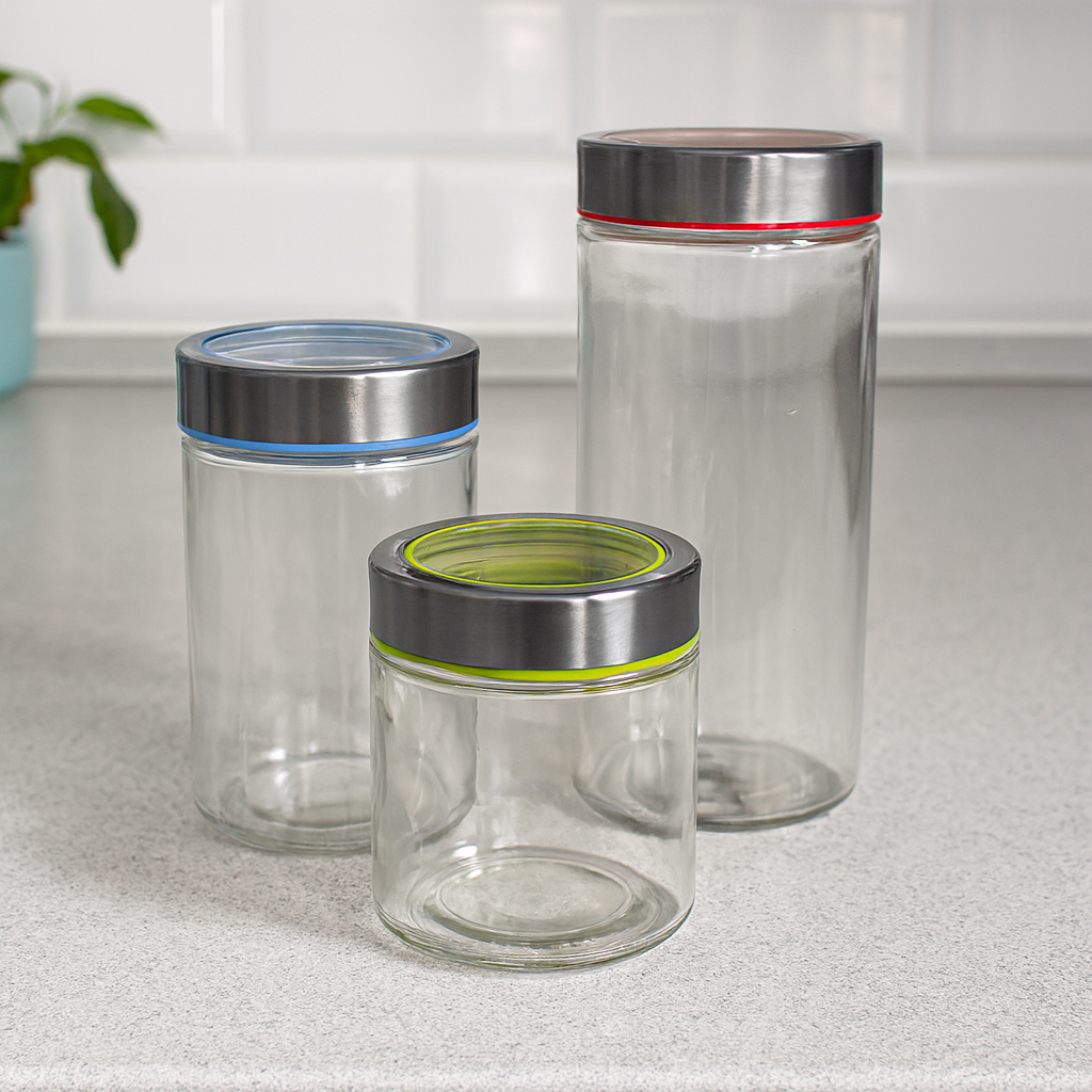 Jogo Com 3 Potes Herméticos De Vidro Hauskraft