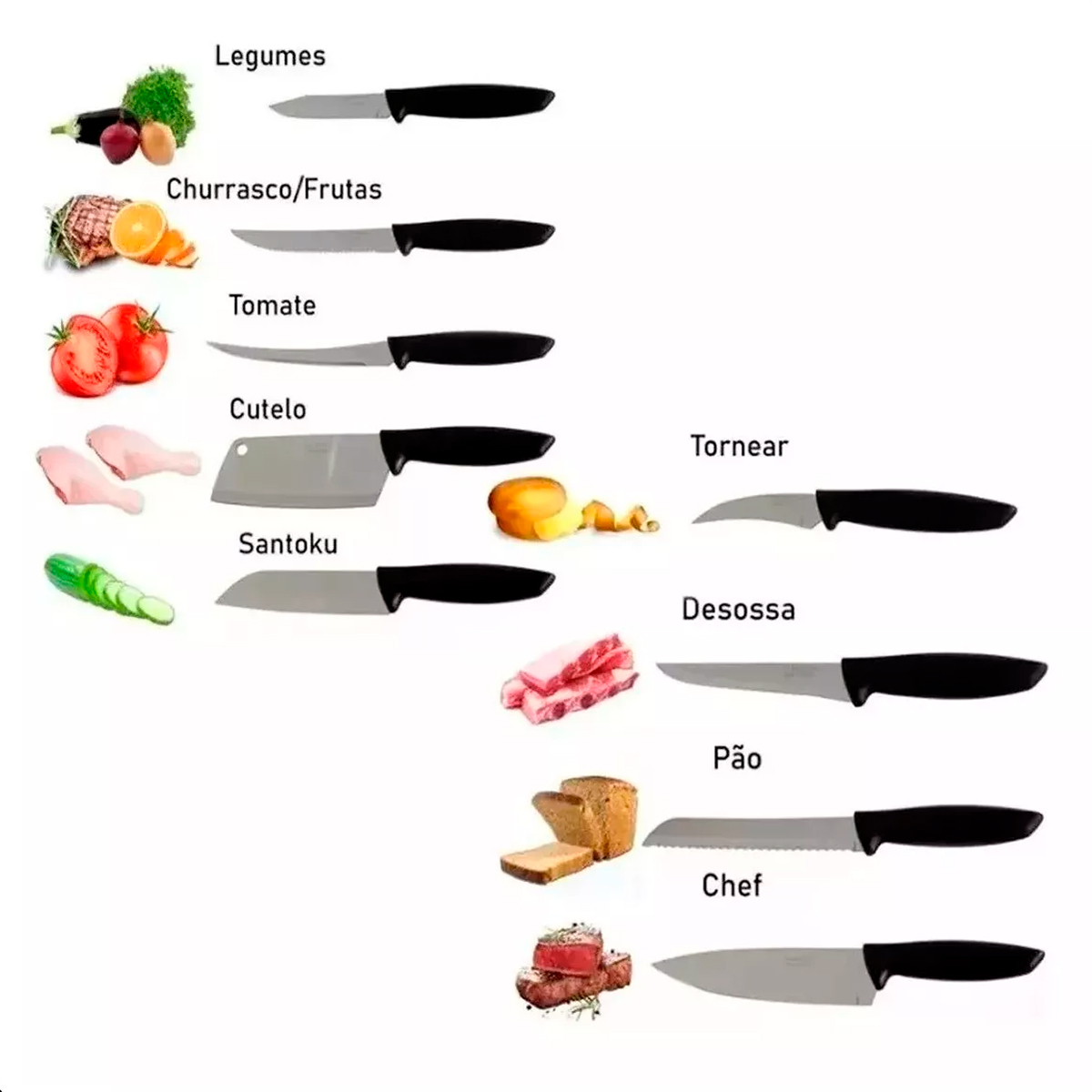 Com design elegante, os cabos em polipropileno na cor preta combinam com qualquer estilo de cozinha, adicionando um toque moderno e clássico ao ambiente. Outro diferencial importante é a facilidade de limpeza: todas as facas podem ser lavadas na máquina de lavar louças sem comprometer a qualidade do produto.