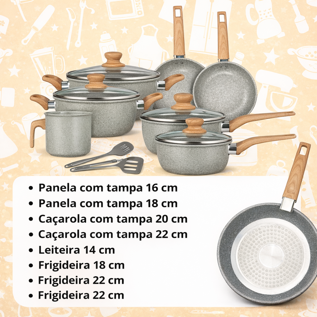 Revestimento cerâmico antiaderente: Jogo De Panelas Cerâmica Antiaderente que facilita o preparo e a limpeza diária.