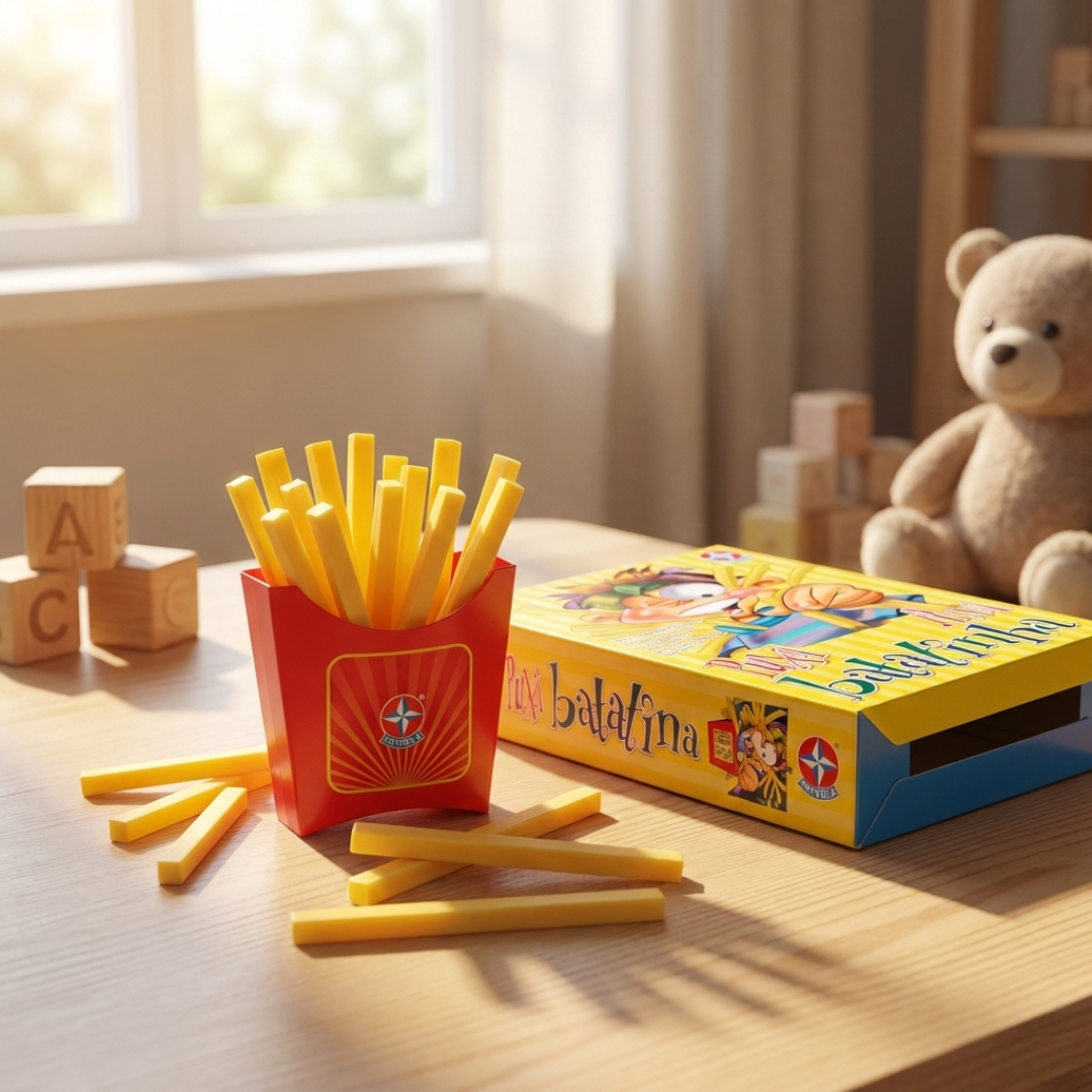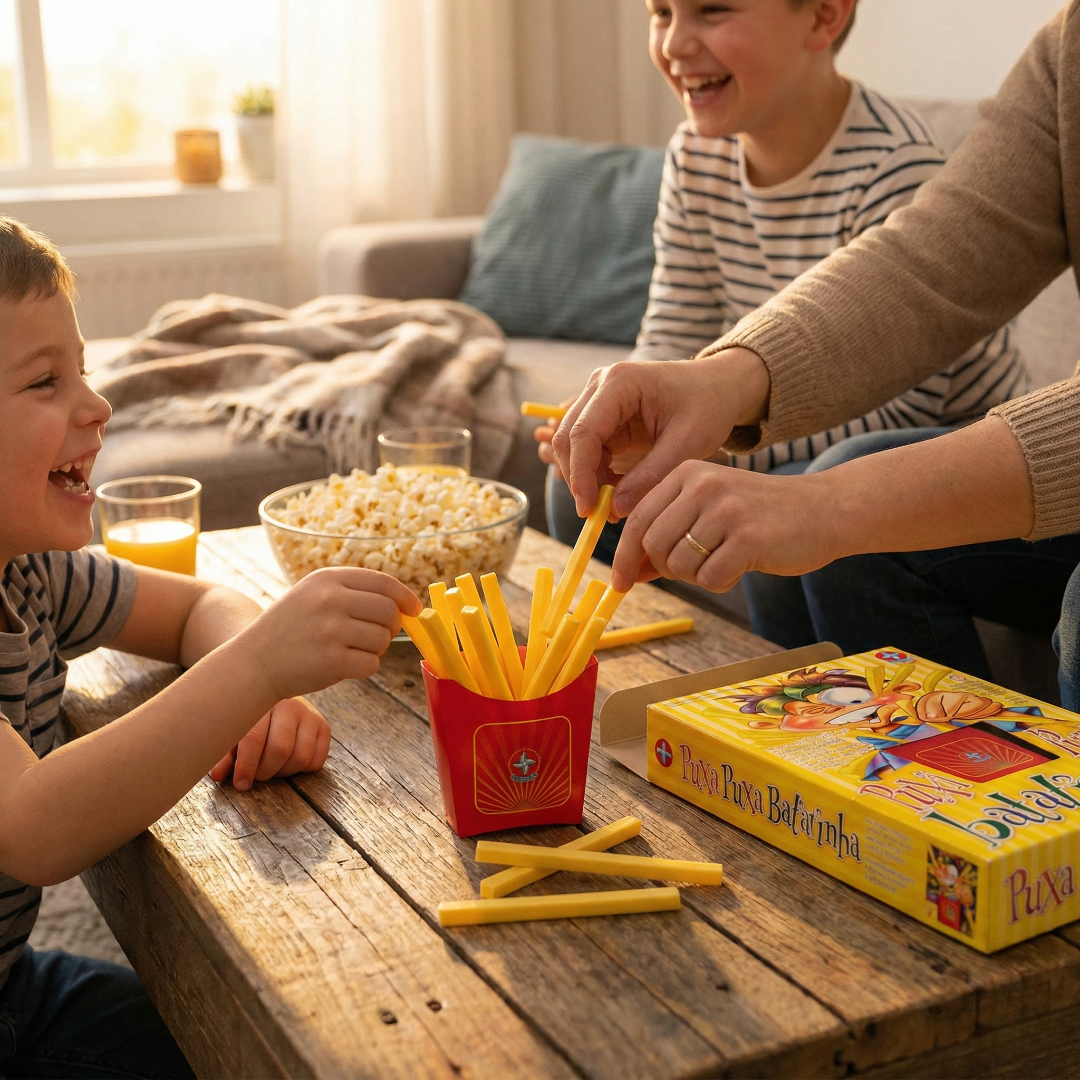 Produzido pela Estrela, este jogo de ação é simples e envolvente. O objetivo no jogo puxa puxa batatinha é retirar as batatas fritas da embalagem uma por uma, mas cuidado: se você puxar a batata errada, todas as outras pulam para fora! Com um mecanismo de mola que dispensa pilhas, a imprevisibilidade torna cada partida única, estimulando a interação social e a coordenação motora dos pequenos.