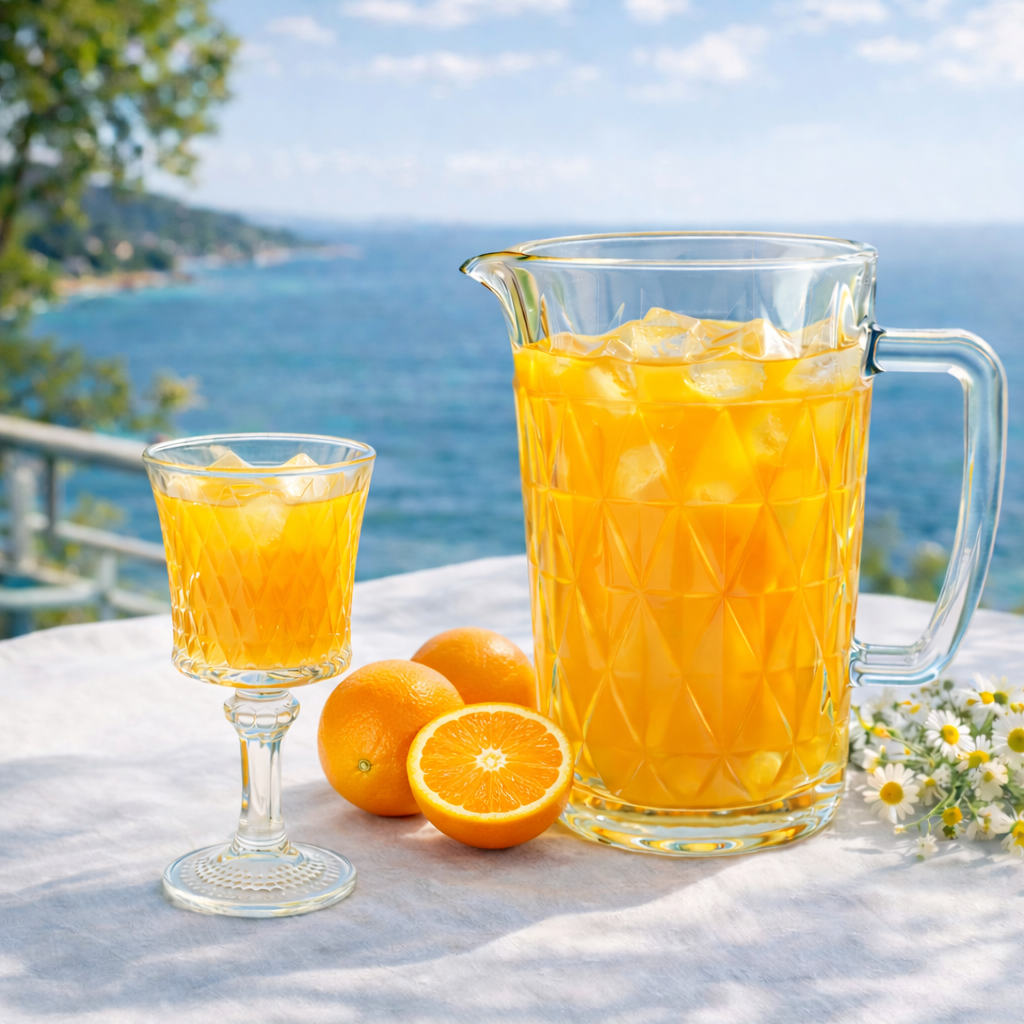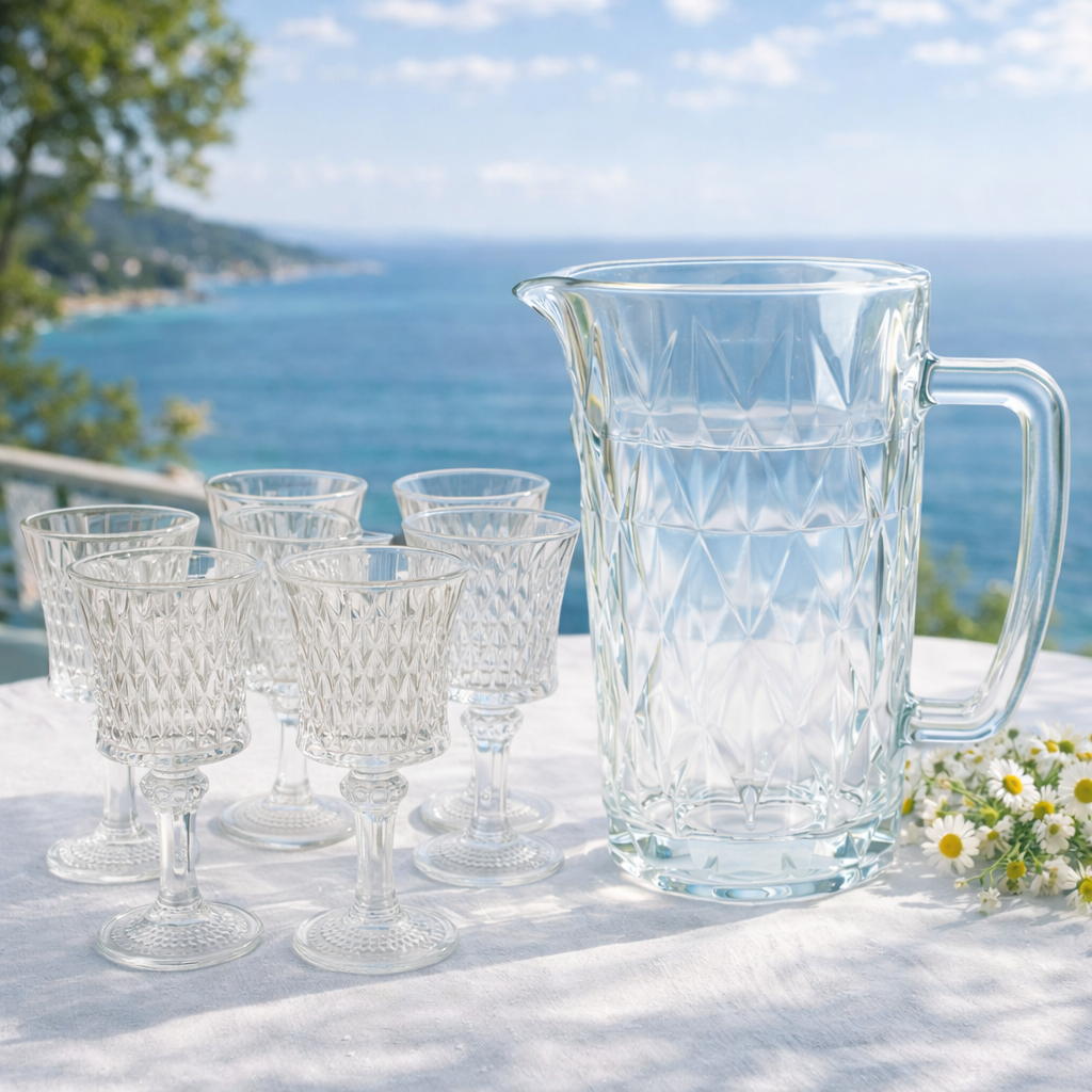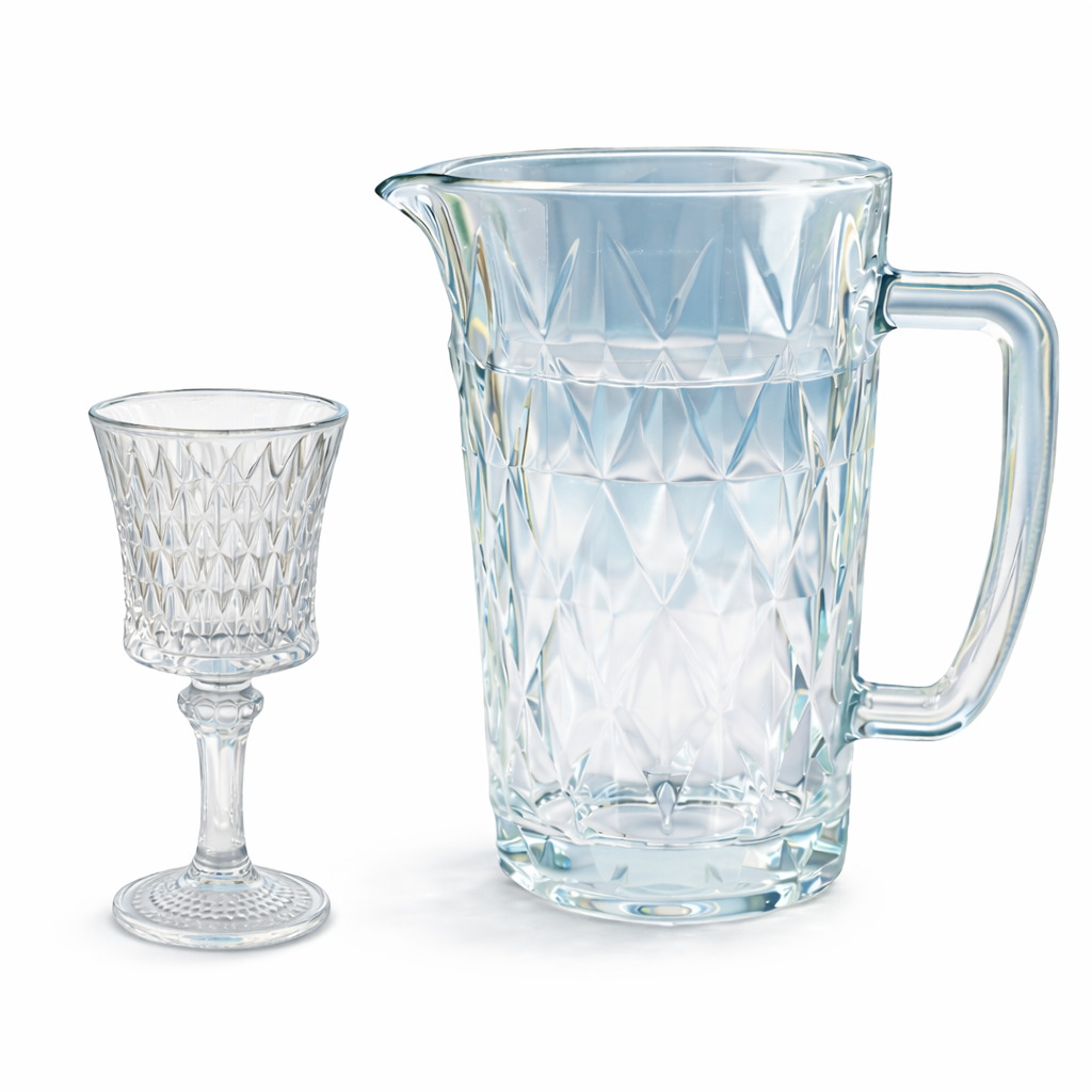 Conjunto Completo e Funcional: O kit oferece 12 taças e uma jarra combinando perfeitamente para servir com praticidade.