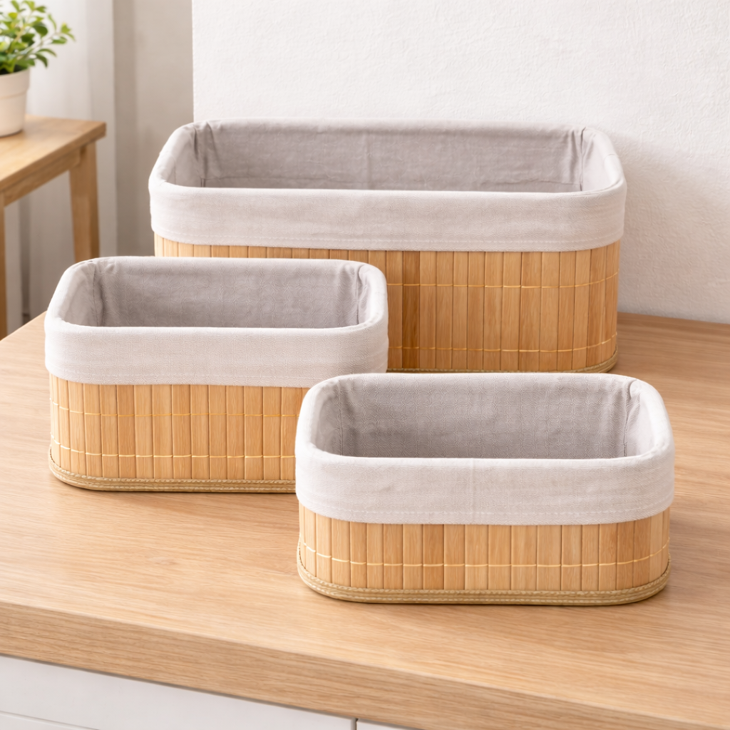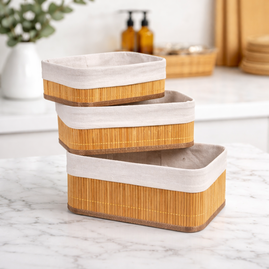 O Kit 3 Cestos de Bambu é a escolha perfeita para quem deseja unir organização, sustentabilidade e estilo em um único kit.