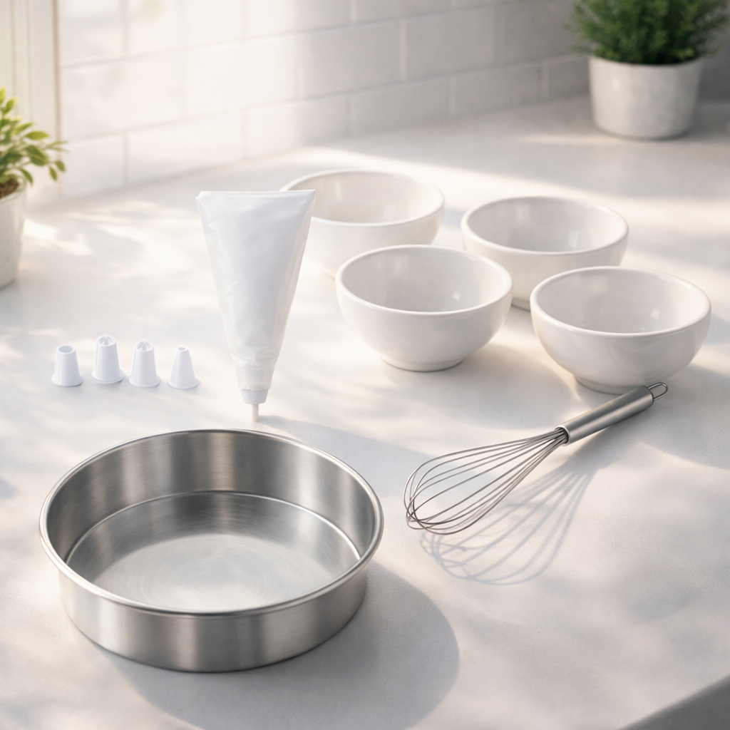 Acessórios Completos: kit para bolo com 4 bowls, 1 bico de confeitar e 1 batedor fuê para preparo completo.