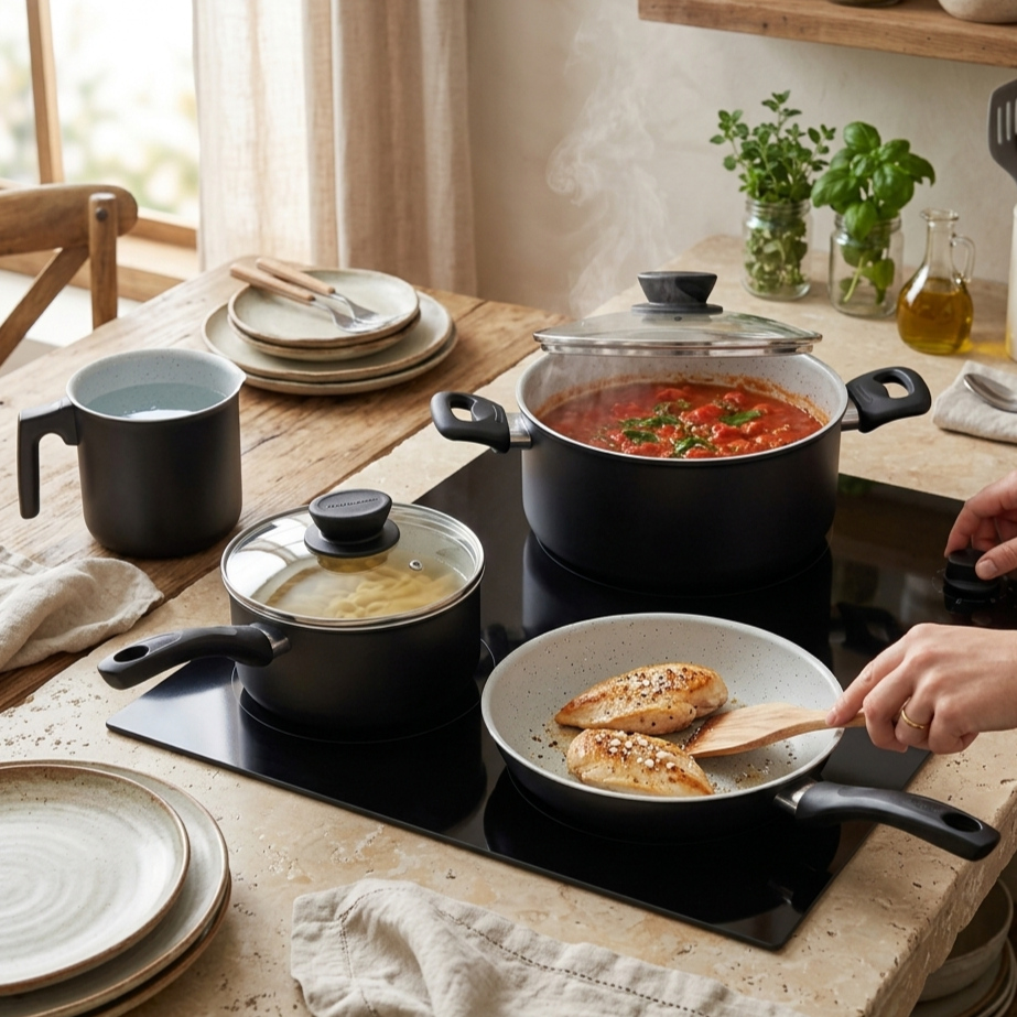 Renove sua cozinha com a Tramontina e o Linz jogo de panelas antiaderente Tramontina perfeito para quem busca eficiência. Este conjunto foi desenvolvido para facilitar o preparo de refeições diárias com agilidade e total segurança técnica em casa.