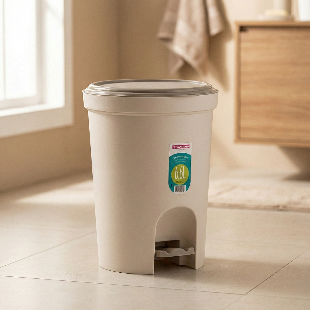 Mantenha a higiene e a organização do seu ambiente com a Lixeira com Pedal 6.6L Sanremo. Compacta e discreta, ela é a escolha perfeita para banheiros, cozinhas pequenas ou escritórios, oferecendo um sistema de pedal que permite a abertura da tampa sem o uso das mãos, garantindo muito mais praticidade e evitando o contato direto com o lixo.